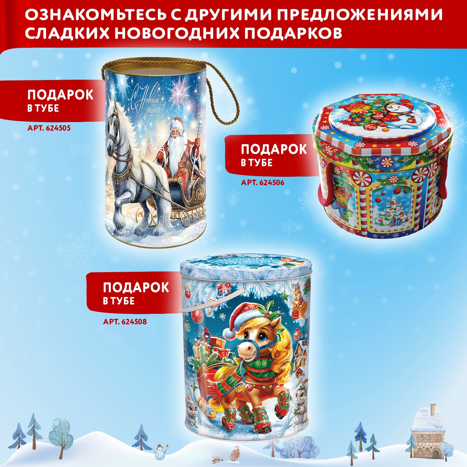 Подарок новогодний "КАРУСЕЛЬ", 600 г, НАБОР конфет, жестяная упаковка с ручкой, МОСУПАК