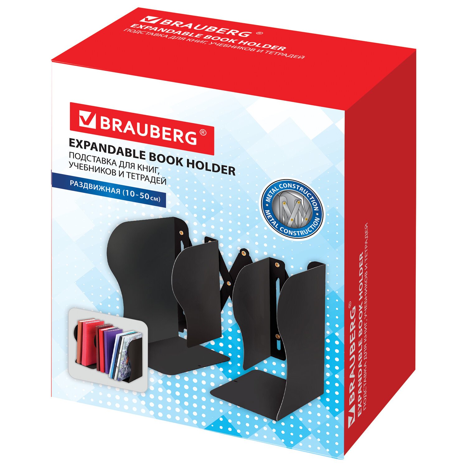 Подставка-держатель для книг и учебников BRAUBERG, раздвижная, металлическая, черная, 237904