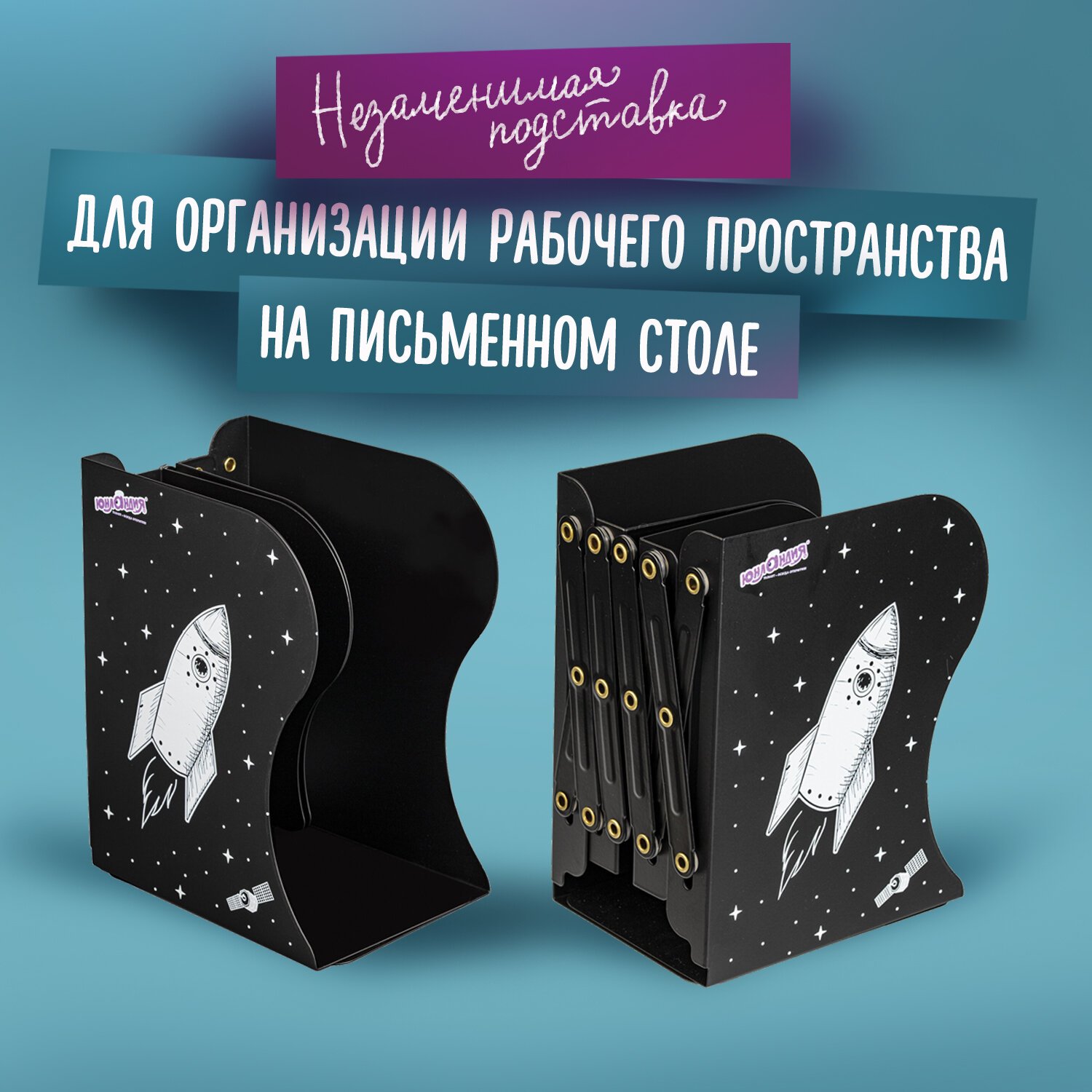 Раздвижная подставка-держатель для книг ЮНЛАНДИЯ "Space" добавит уюта, поможет навести порядок и организовать рабочее пространство на письменном столе. Яркий дизайн станет изюминкой в любом интерьере.