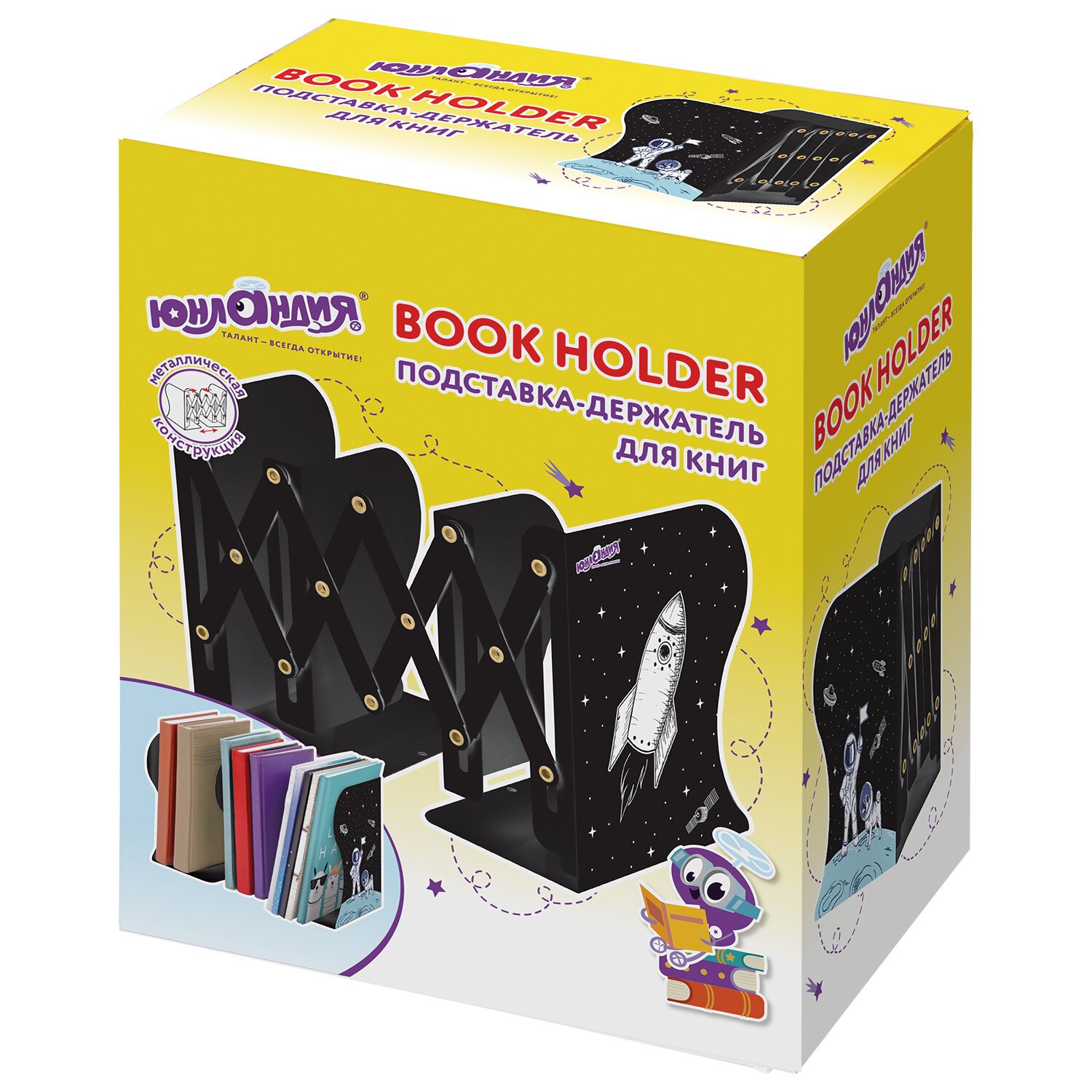 Подставка-держатель для книг и учебников ЮНЛАНДИЯ "Space", раздвижная, металлическая, 237901
