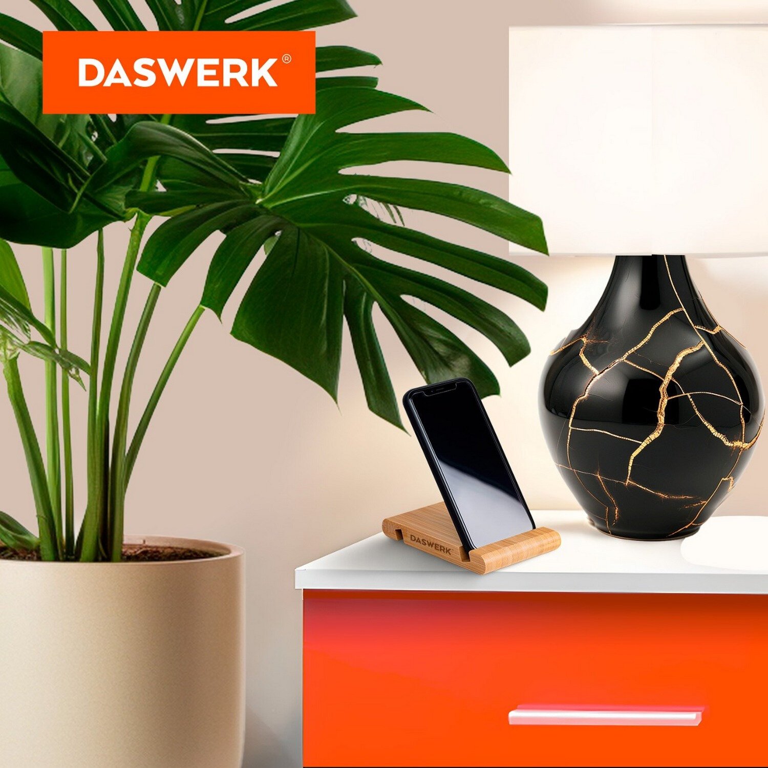 Подставка для телефона или планшета DASWERK изготовлена из бамбука – красивого и приятного на ощупь материала. Благодаря пазам двух размеров подставка подходит для разных устройств.