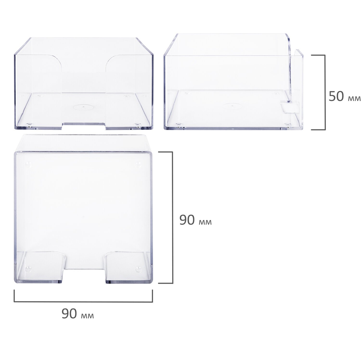 Подставка для бумажного блока BRAUBERG CLASSIC пластиковая, 90х90х50 мм, прозрачная, 238091