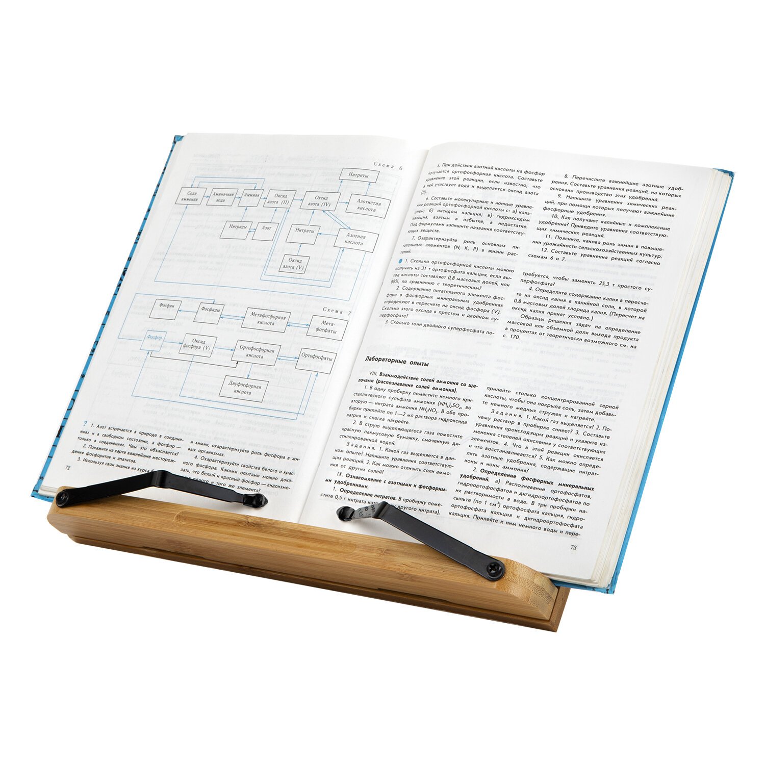 Подставка BRAUBERG выполнена из экологичного материала - бамбука. Она способна удержать даже увесистые книги или гаджеты. Регулируемый наклон подставки позволяет комфортно разместить книгу, журнал или планшет на рабочем месте, обеспечивая удобство при чтении и работе с текстом, а также при просмотре видео. Держатели страниц, фиксирующие книгу снизу на выбранной странице, также оснащены насадками, которые защищают поверхность от царапин. Размер подставки - 28х20 см.