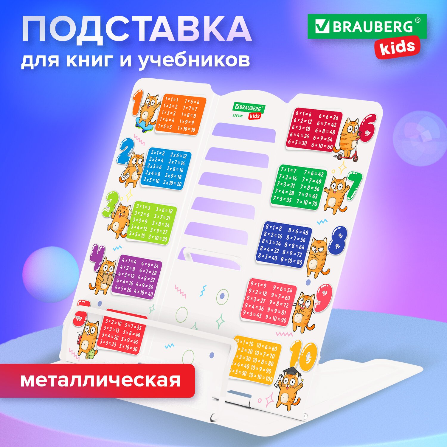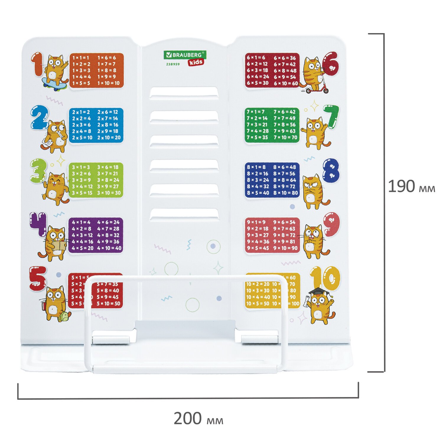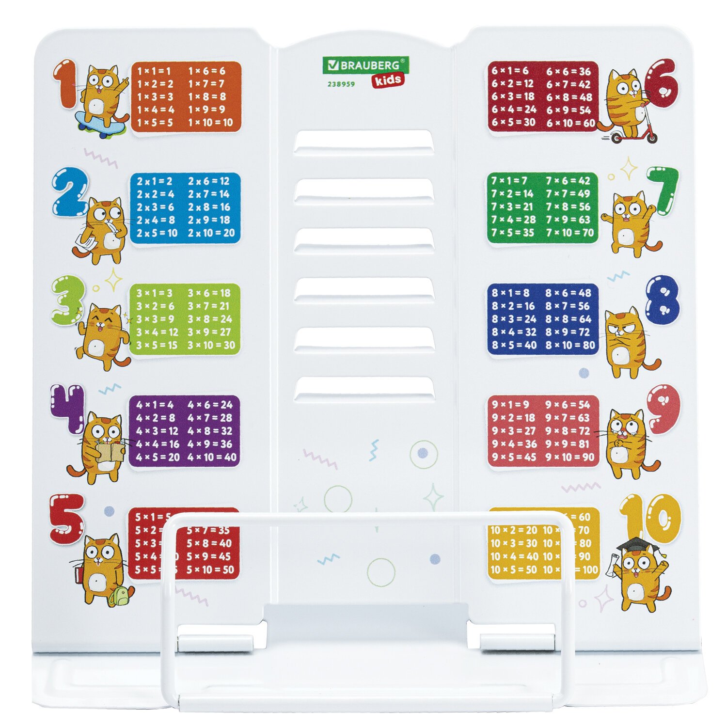 Подставка для книг и учебников большая BRAUBERG KIDS "Кот-Энтузиаст" с таблицей умножения, регулируемый угол наклона, металлическая, 238959