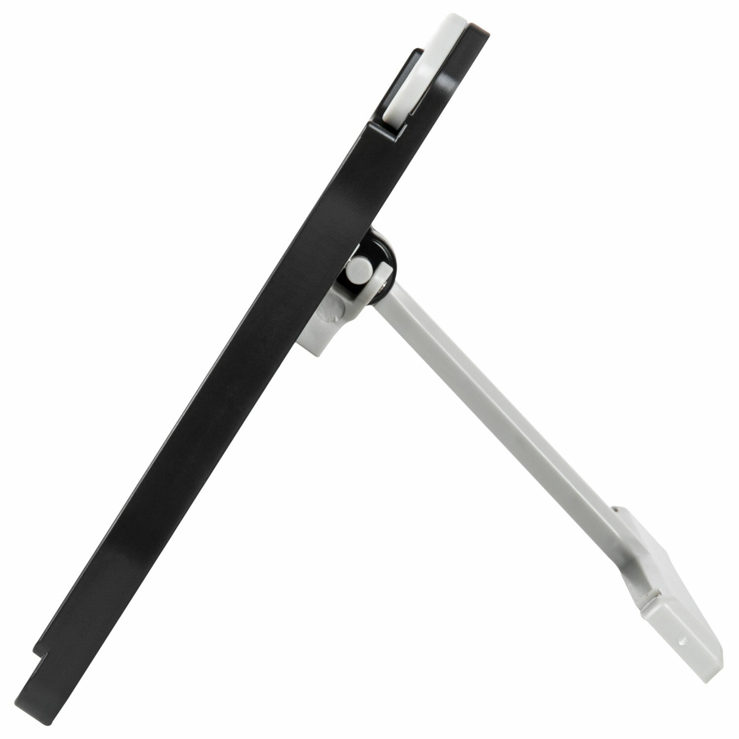 Подставка выполнена из прочного ABS-пластика. Регулируемый угол наклона обеспечивает удобство при работе с текстом, облегчает чтение и подготовку домашней работы. Раскладные верхние планки позволяют размещать книги большого формата. Нижние держатели регулируется в зависимости от толщины книги. Блокиратор позволяет надежно зафиксировать подставку на столе и не позволит ей упасть от тяжести книги.