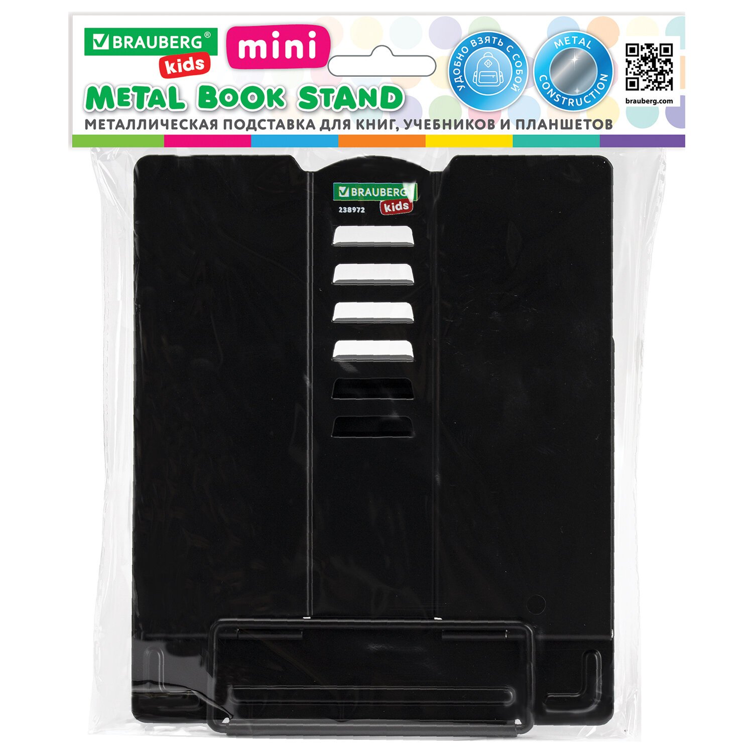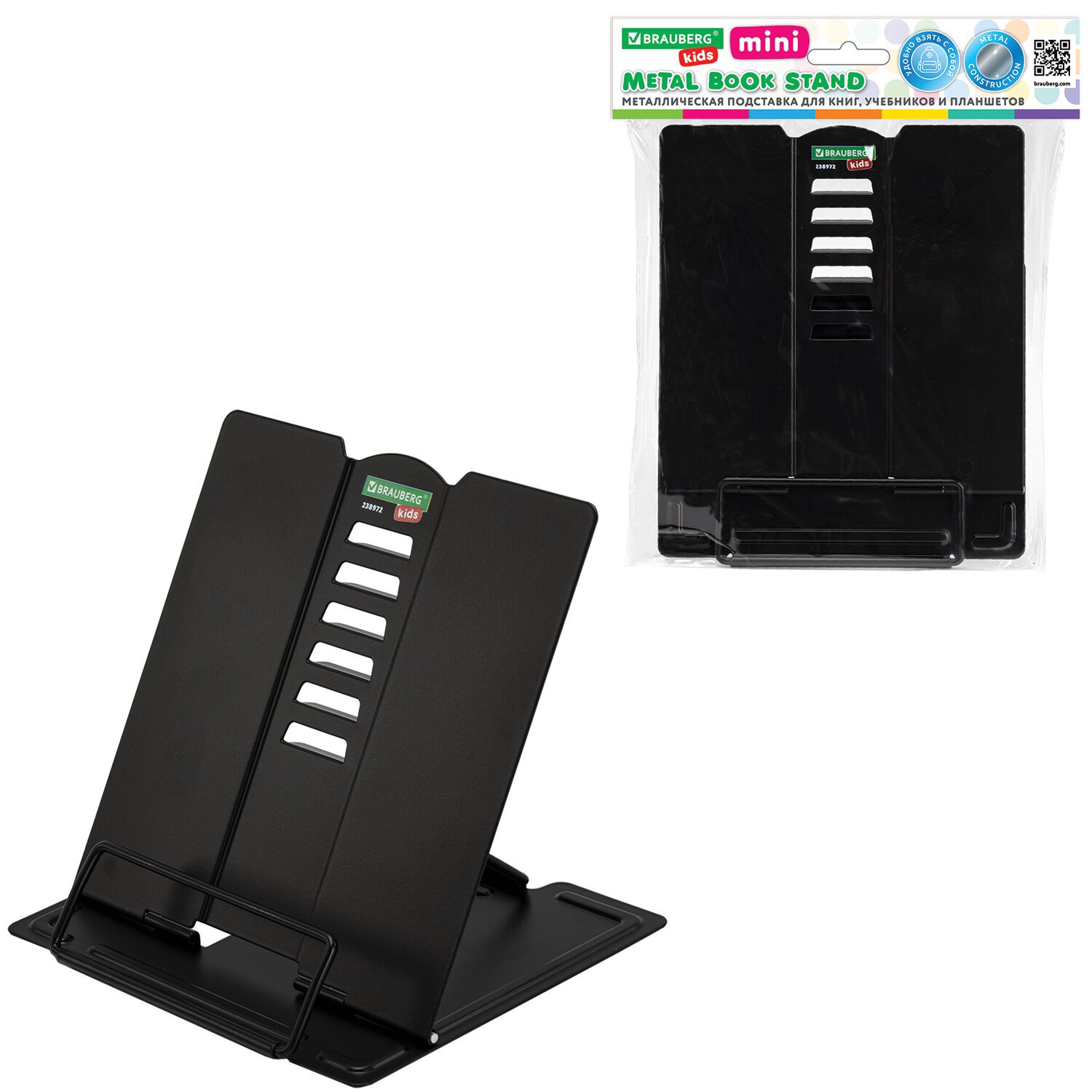 Подставка для книг и учебников BRAUBERG KIDS mini "Black", регулируемый угол наклона, металлическая, 238972