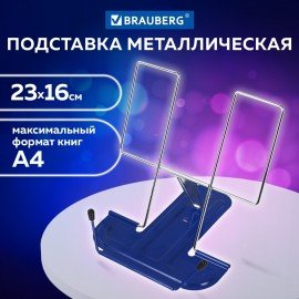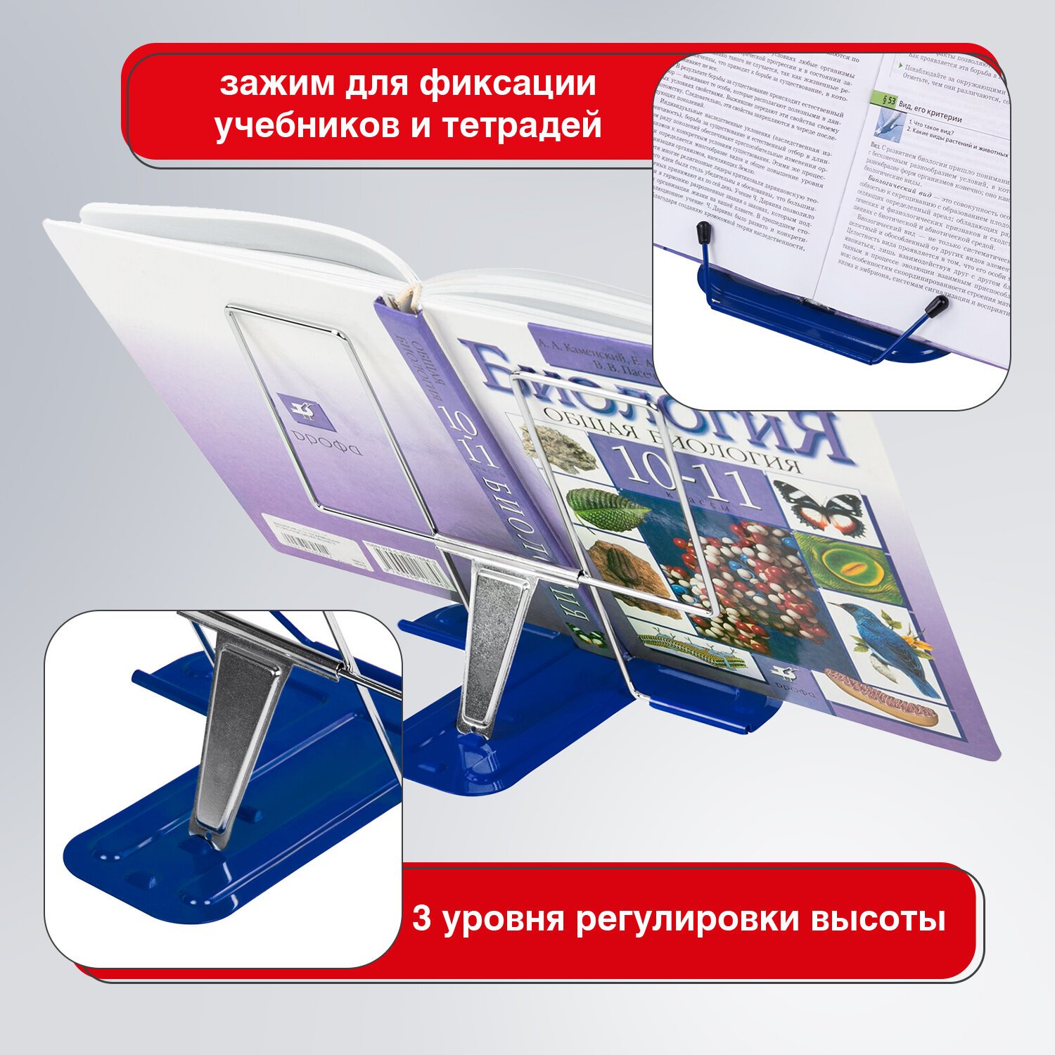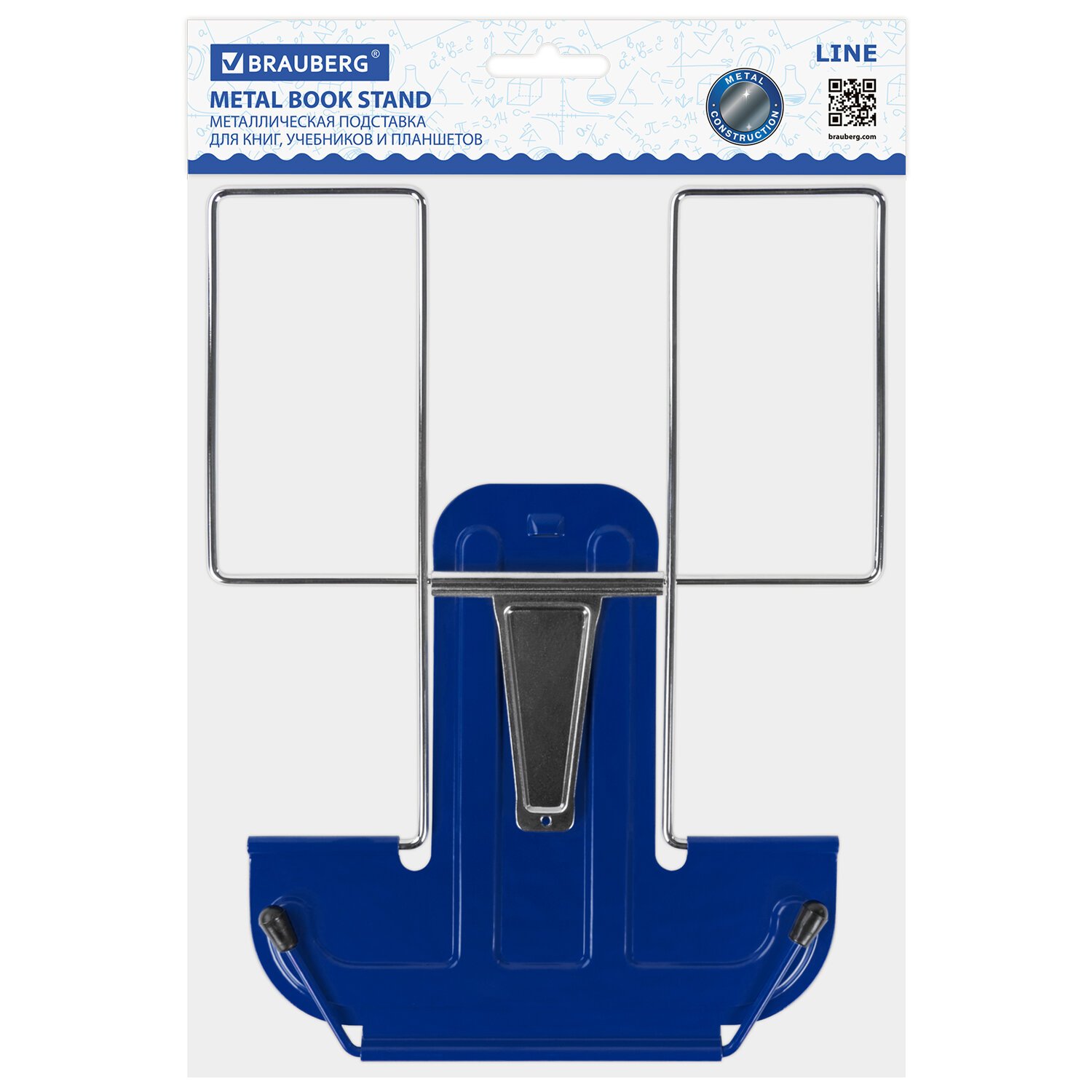Подставка для книг и учебников BRAUBERG LINE+, металлическая, синяя, европодвес, 238071