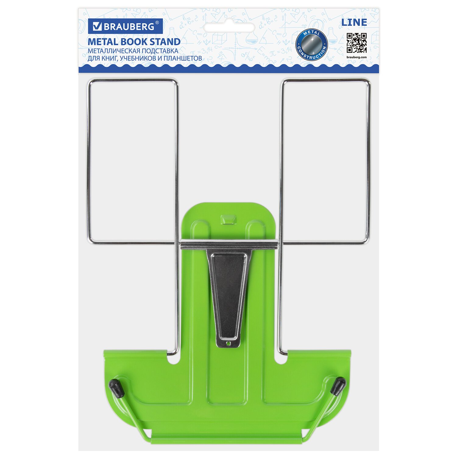 Подставка для книг и учебников BRAUBERG LINE+, металлическая, зеленая, европодвес, 238072