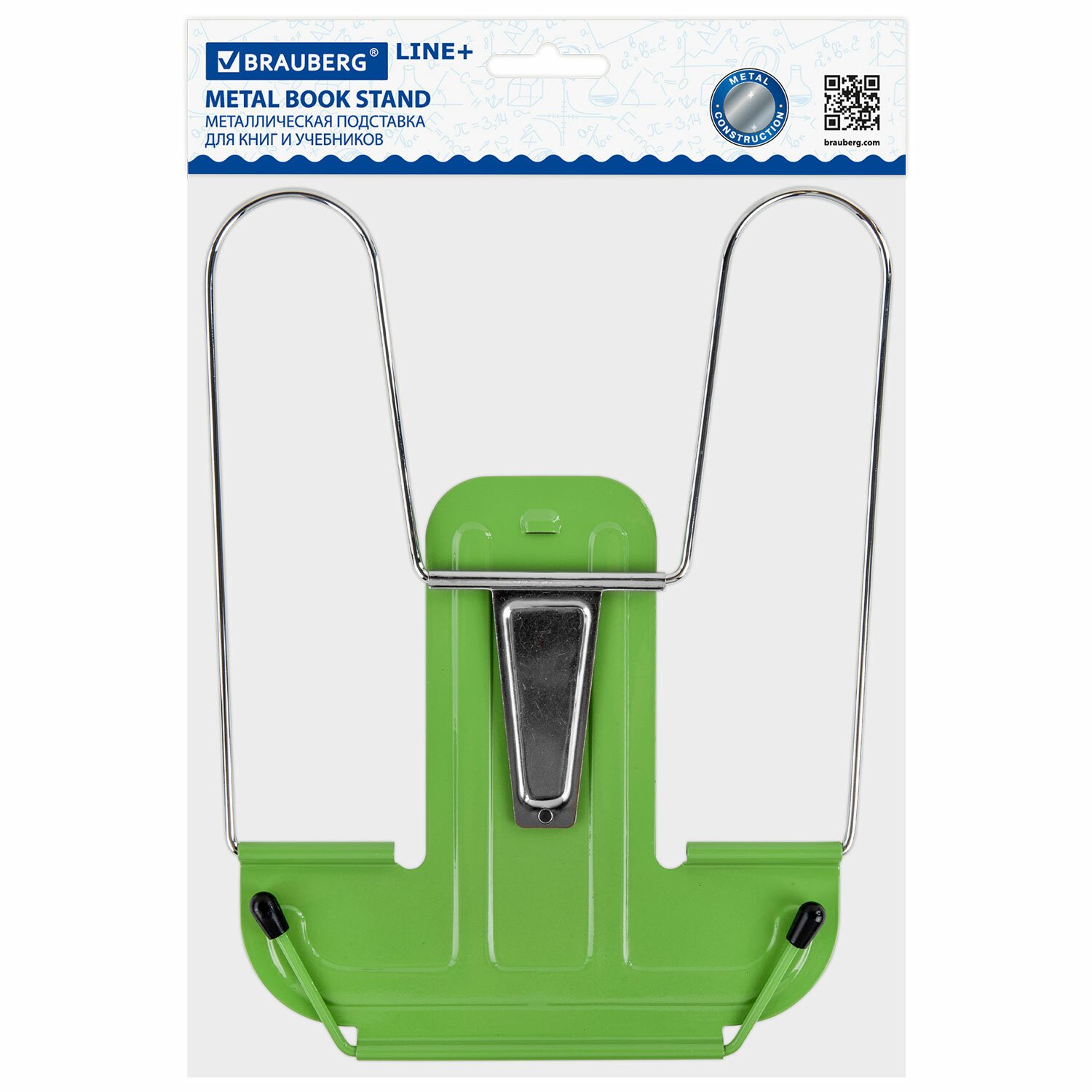 Подставка для книг и учебников BRAUBERG LINE+, металлическая, зеленая, европодвес, 238072
