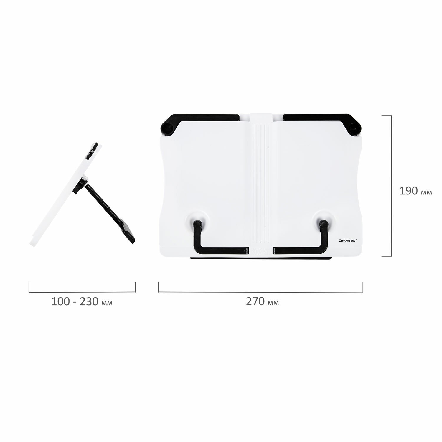 Подставка для книг и учебников BRAUBERG White, регулируемый наклон, ABS-пластик, 238063