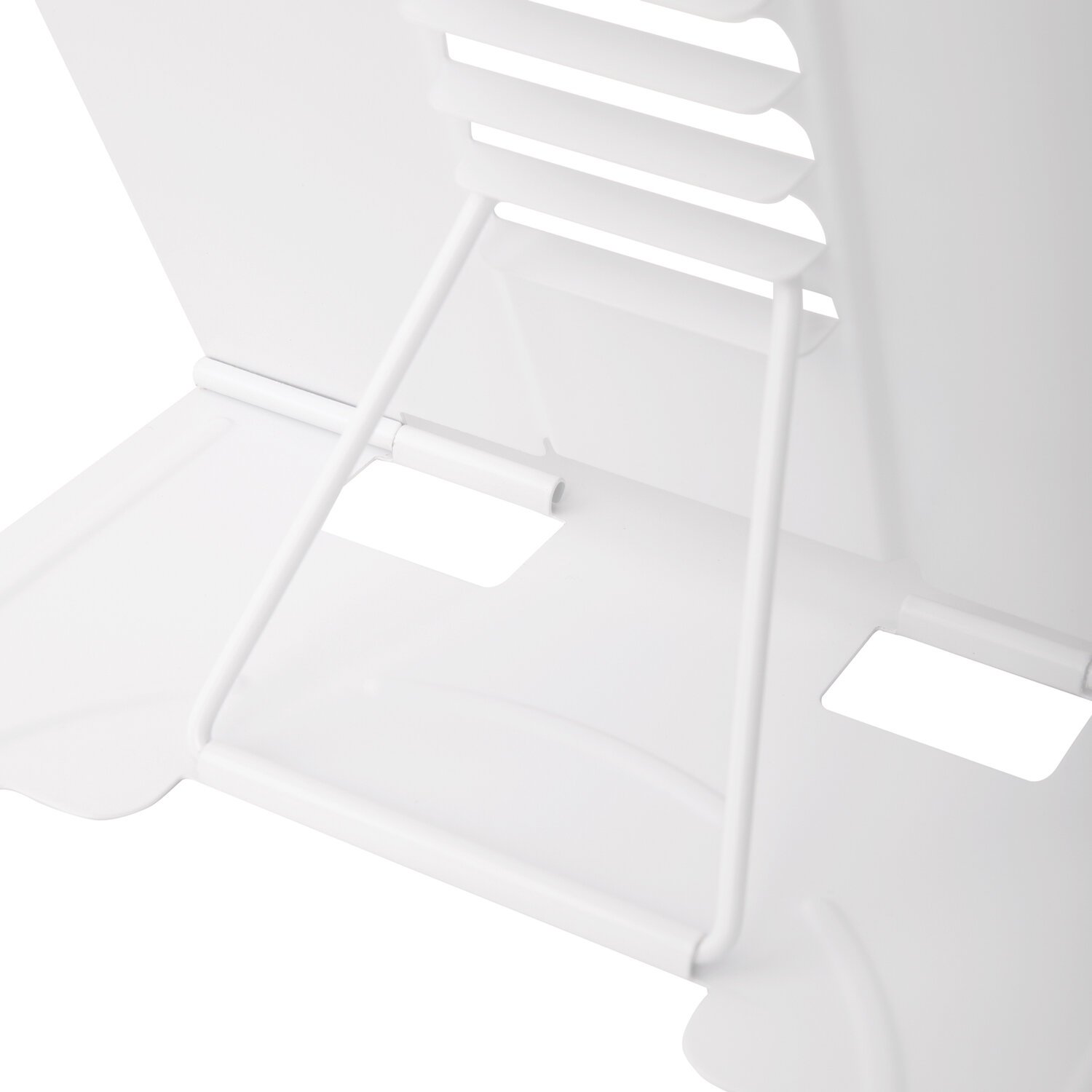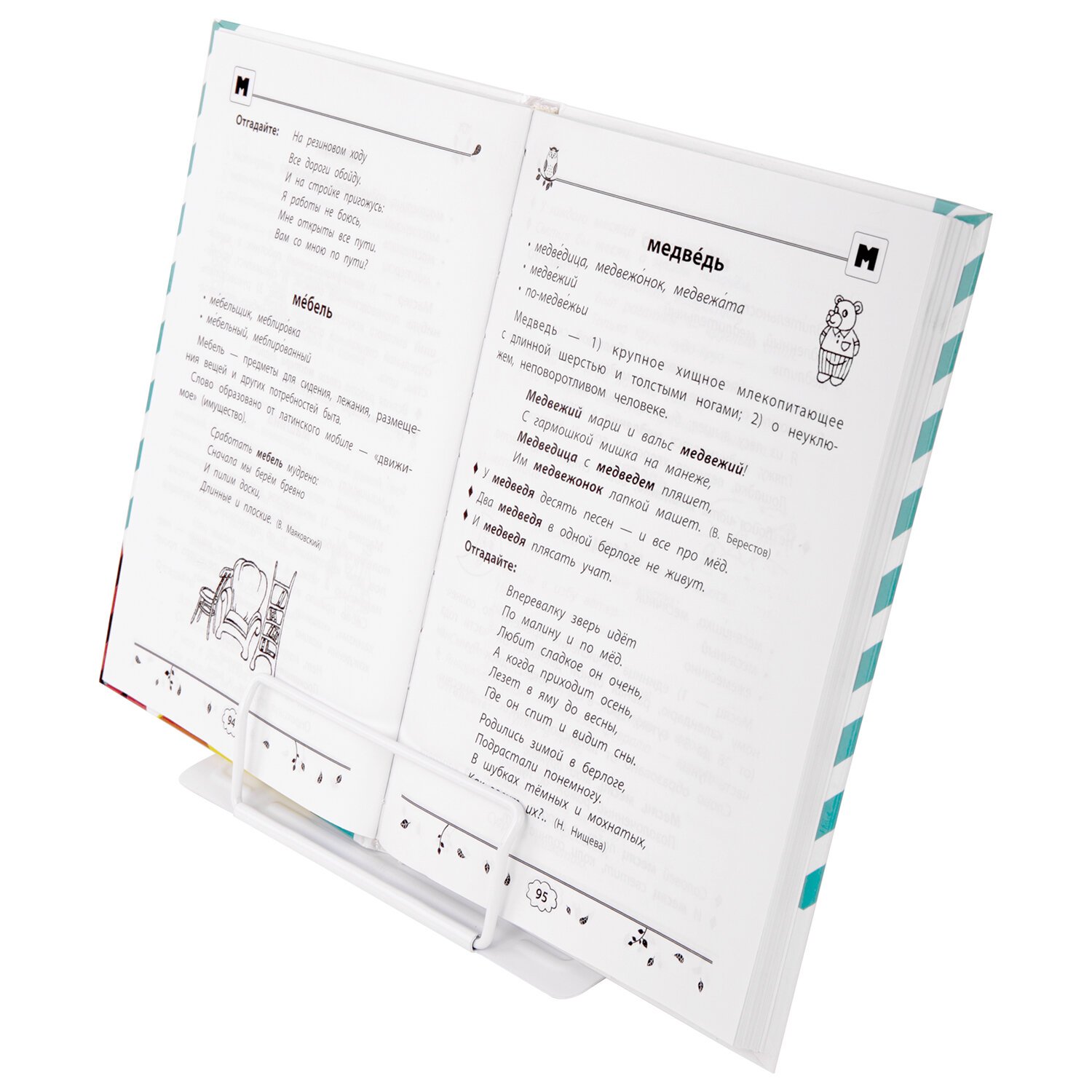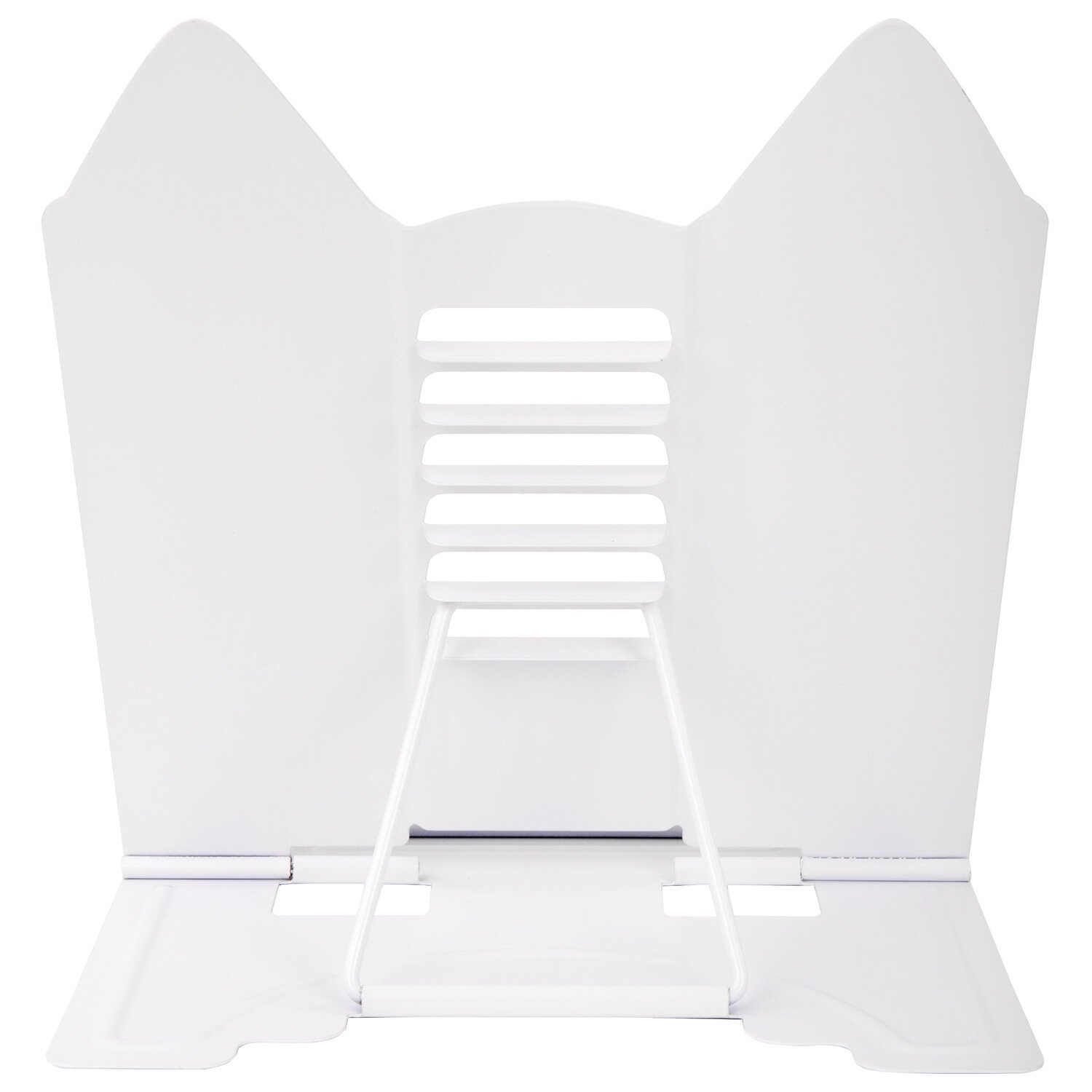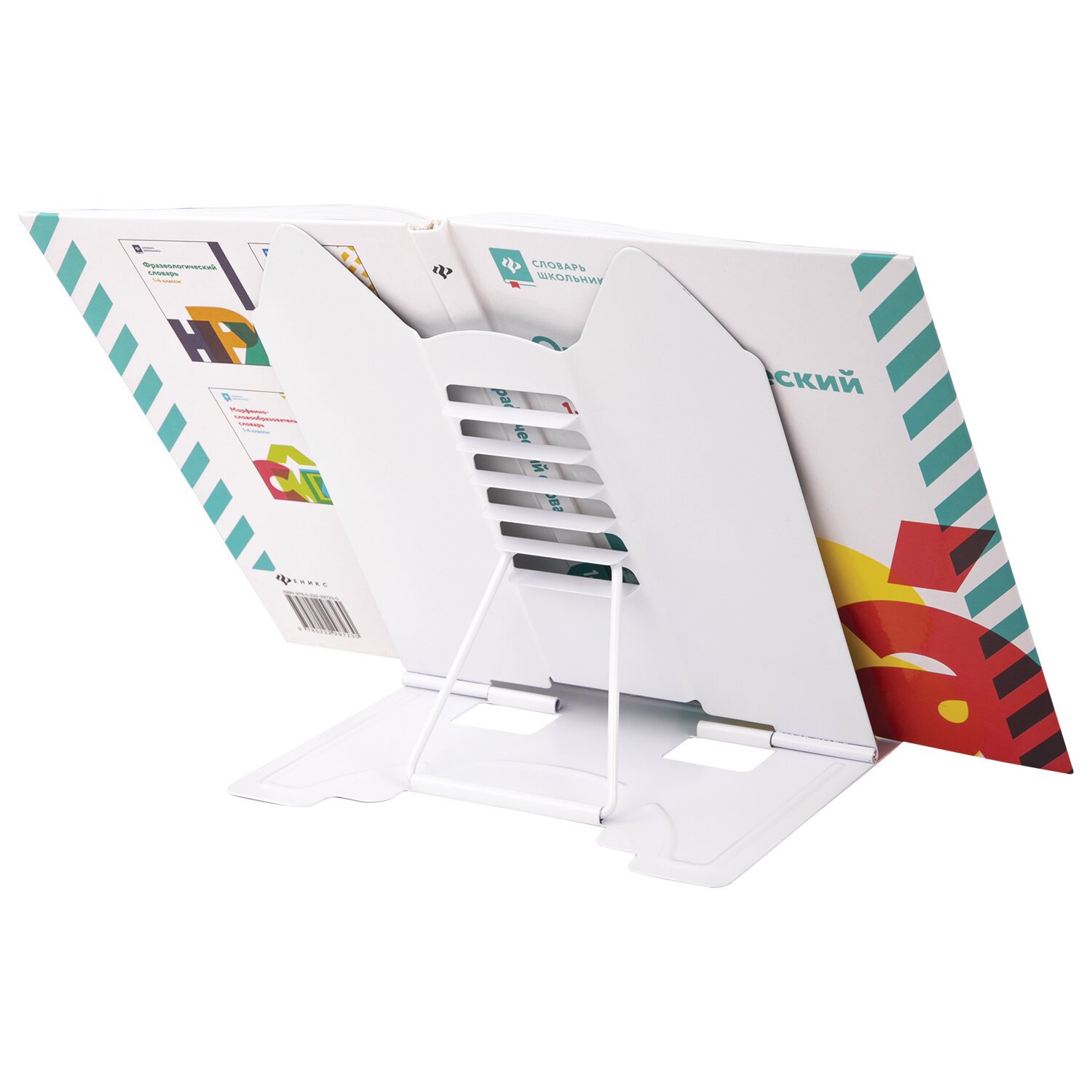 Подставка полностью выполнена из металла, поэтому отлично подойдет для надежной фиксации тяжелых и объемных учебных материалов и книг. Оригинальный дизайн и необычная форма подставки понравится школьнику любого возраста. Регулируемый угол наклона обеспечивает удобство при работе с текстом, облегчает чтение и выполнение домашней работы.