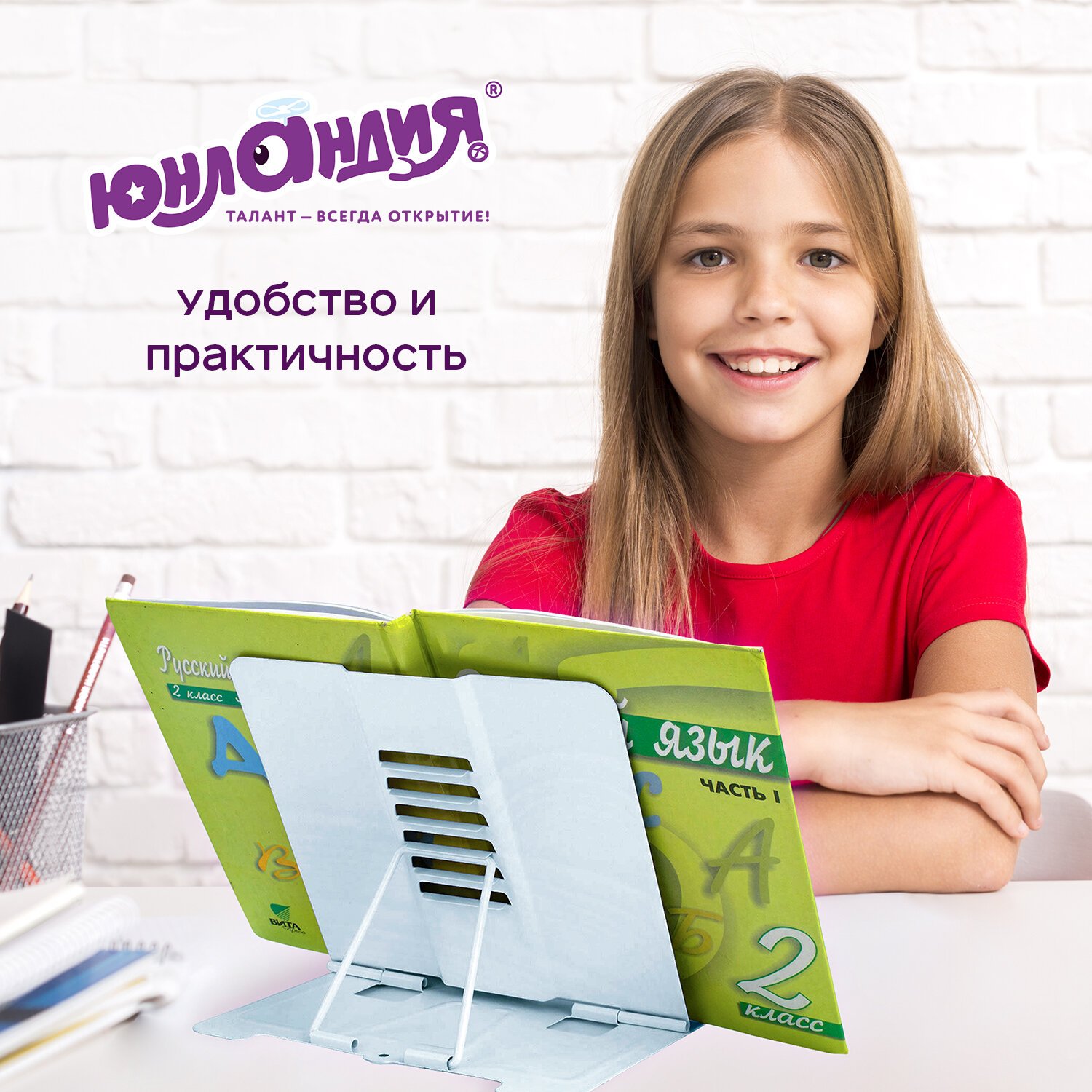 Подставка для книг и учебников ЮНЛАНДИЯ "Lama", регулируемый наклон, металлическая, 237576