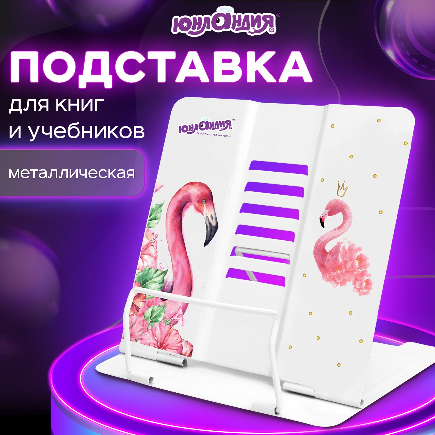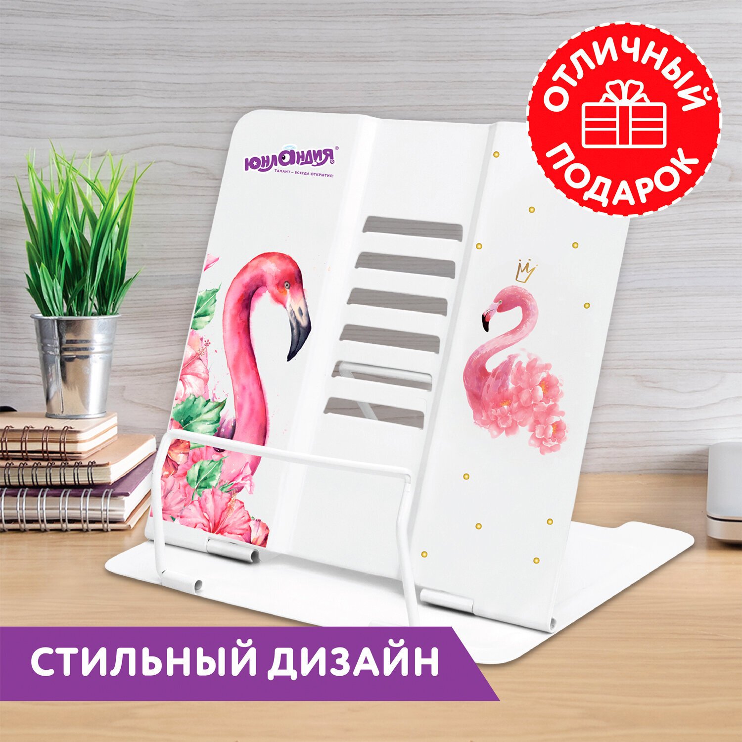 Подставка для книг и учебников ЮНЛАНДИЯ "Flamingo", регулируемый наклон, металлическая, 237573