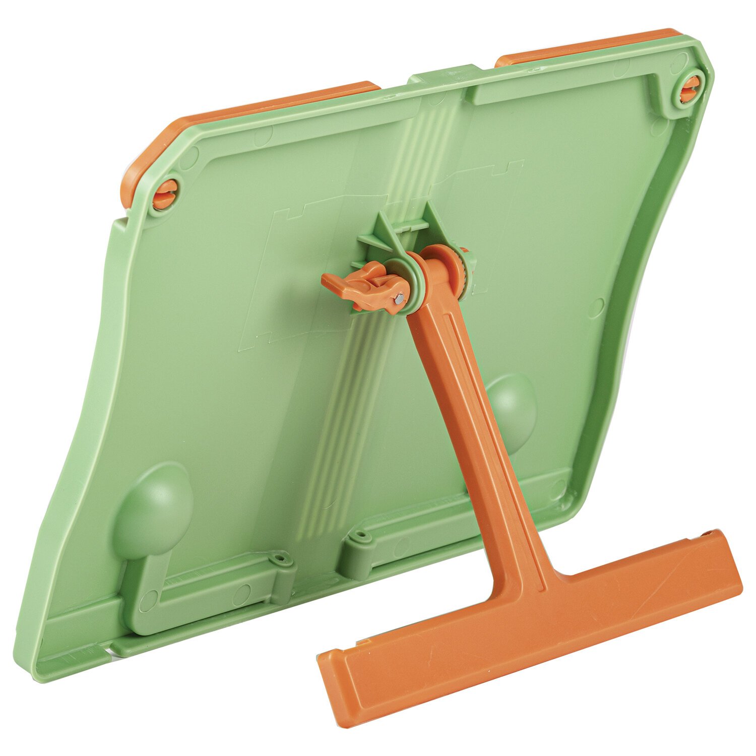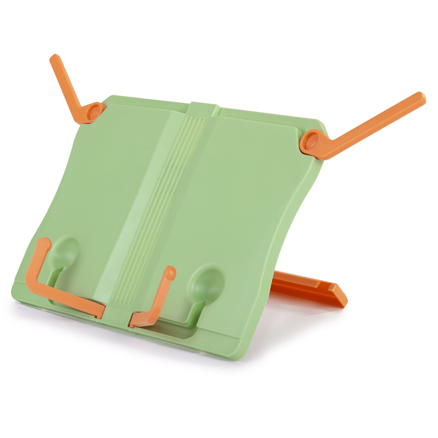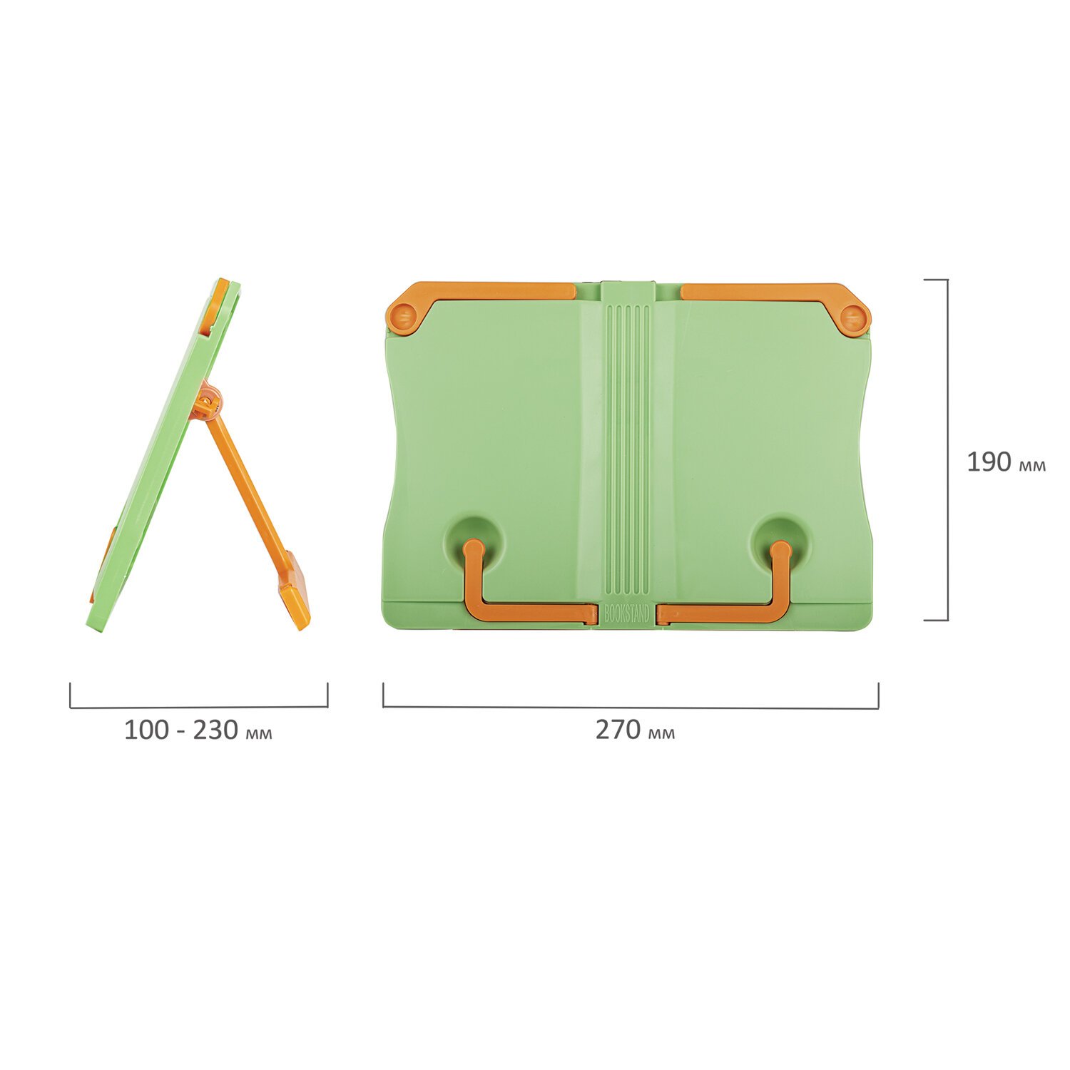 Изготовлена из прочного пластика. Регулируемый угол наклона обеспечивает удобство при работе с текстом, облегчает чтение и подготовку домашней работы. Раскладные верхние планки позволяют размещать книги большого формата. Нижние держатели регулируется в зависимости от толщины книги. Блокиратор позволяет надежно зафиксировать подставку на столе и не позволит ей упасть от тяжести книги. Размер подставки - 19х27 см. Цвет корпуса: светло-зеленый. Цвет держателей: оранжевый.