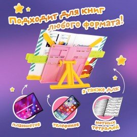 Подставка для книг ЮНЛАНДИЯ, с боковыми зажимами, регулируемый наклон, пластик, розовая, 237907