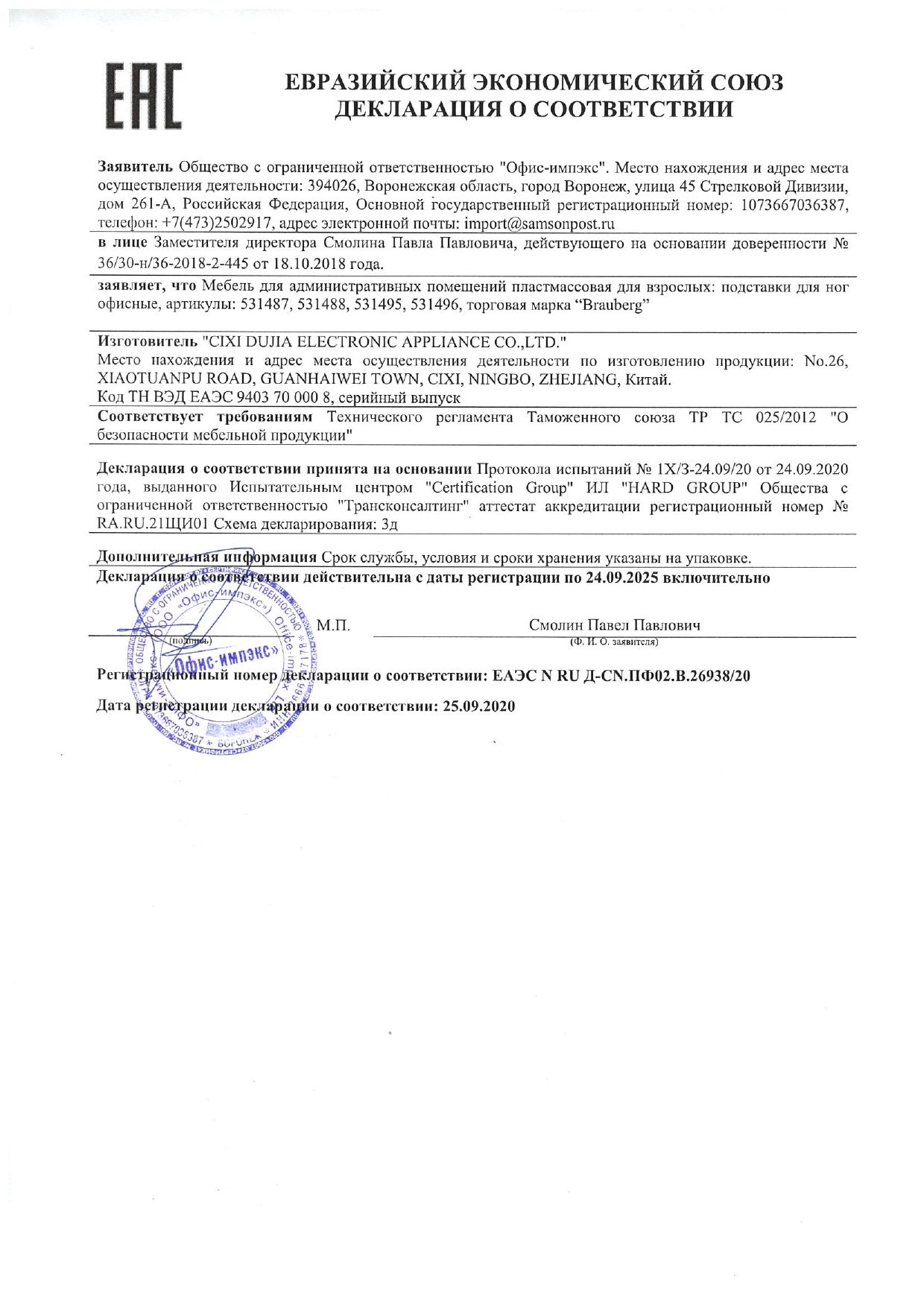 Подставка BRAUBERG позволяет снизить нагрузку на мышцы ног, возникающую при длительной работе сидя.