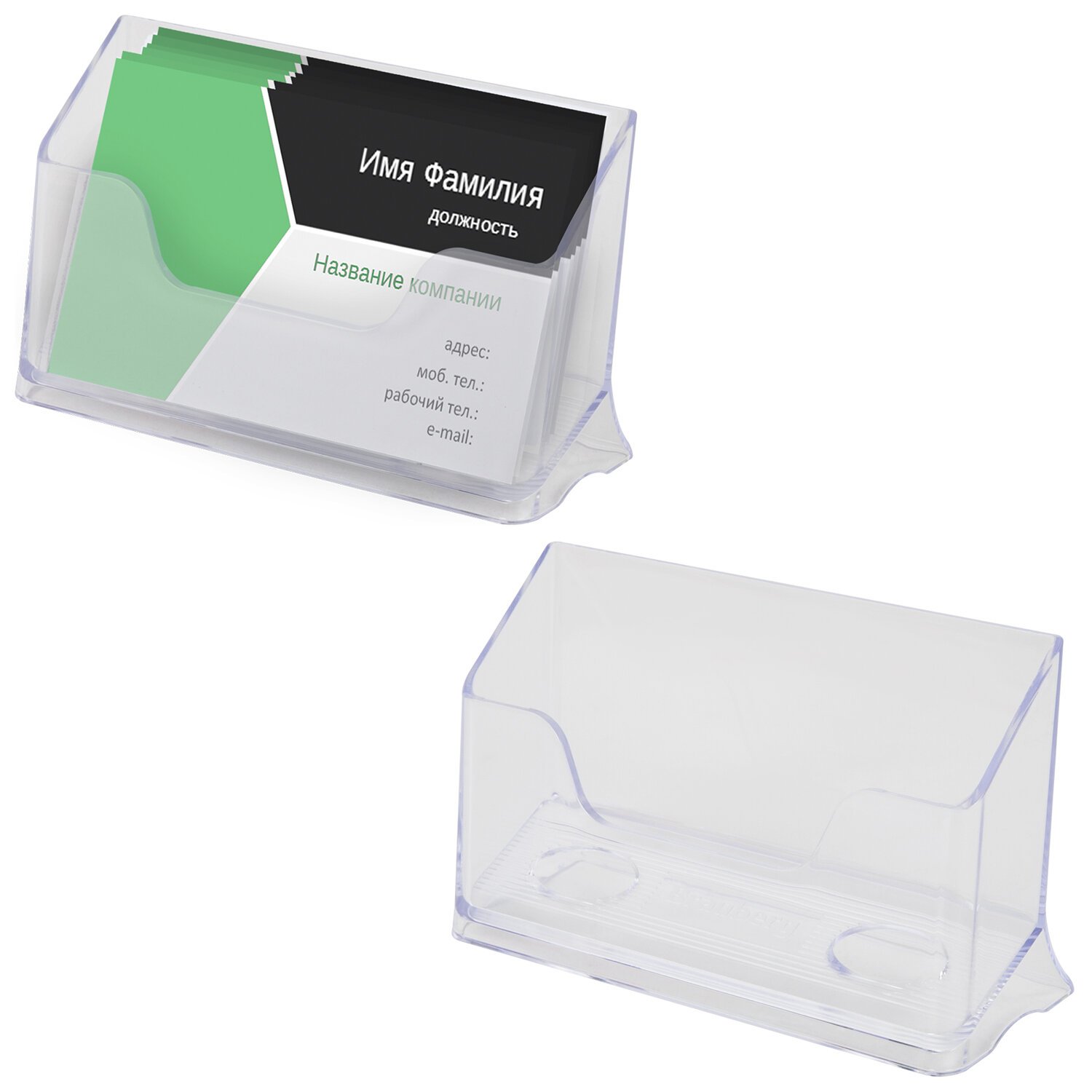 Подставка для визиток настольная 40х100х55 мм, прозрачная, ВТ01