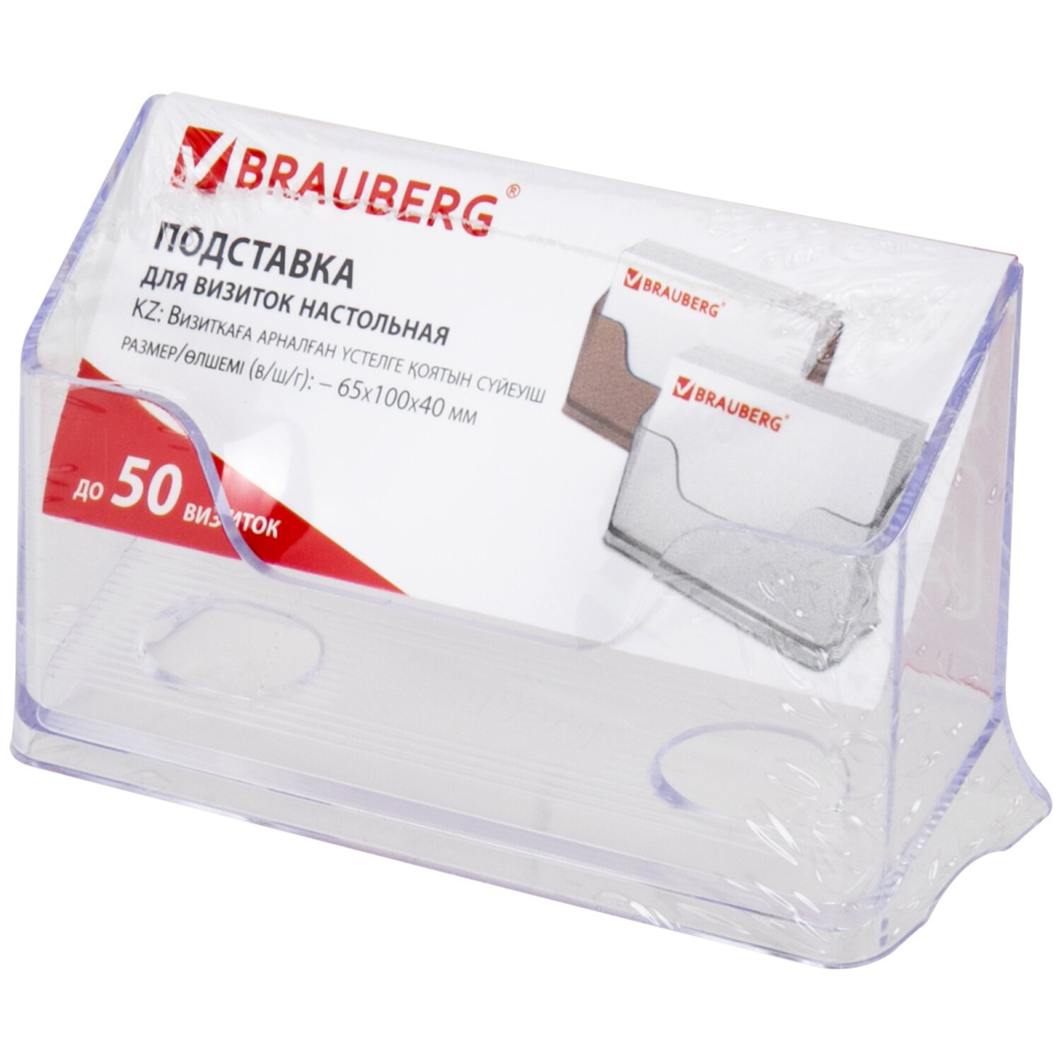 Подставка для визиток настольная BRAUBERG "CONTRACT", на 50 визиток, 100х40х65 мм, прозрачная, 232287
