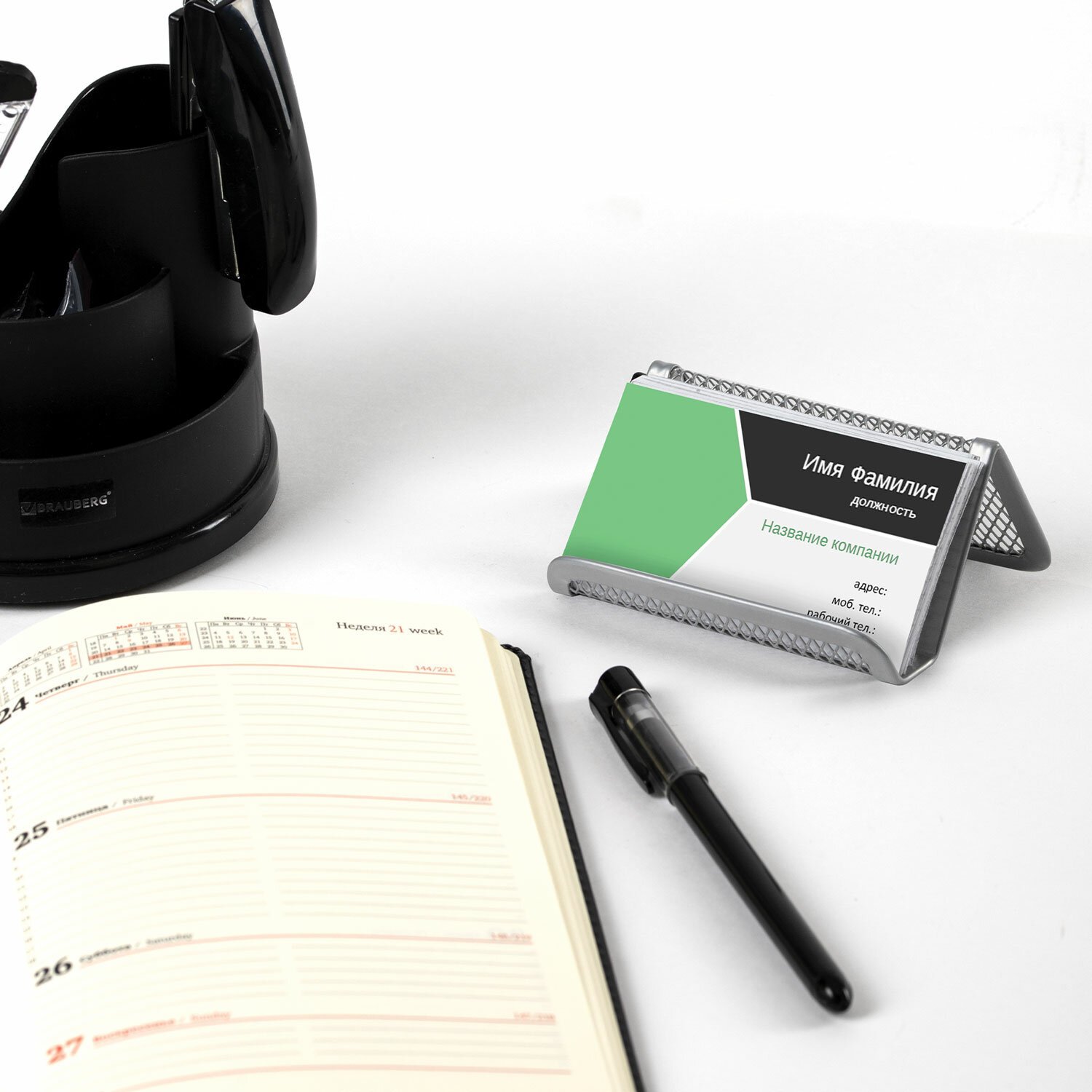 Настольная подставка BRAUBERG "Germanium" предназначена для размещения на столе визитных карточек. Современный дизайн отлично вписывается в офисный интерьер.