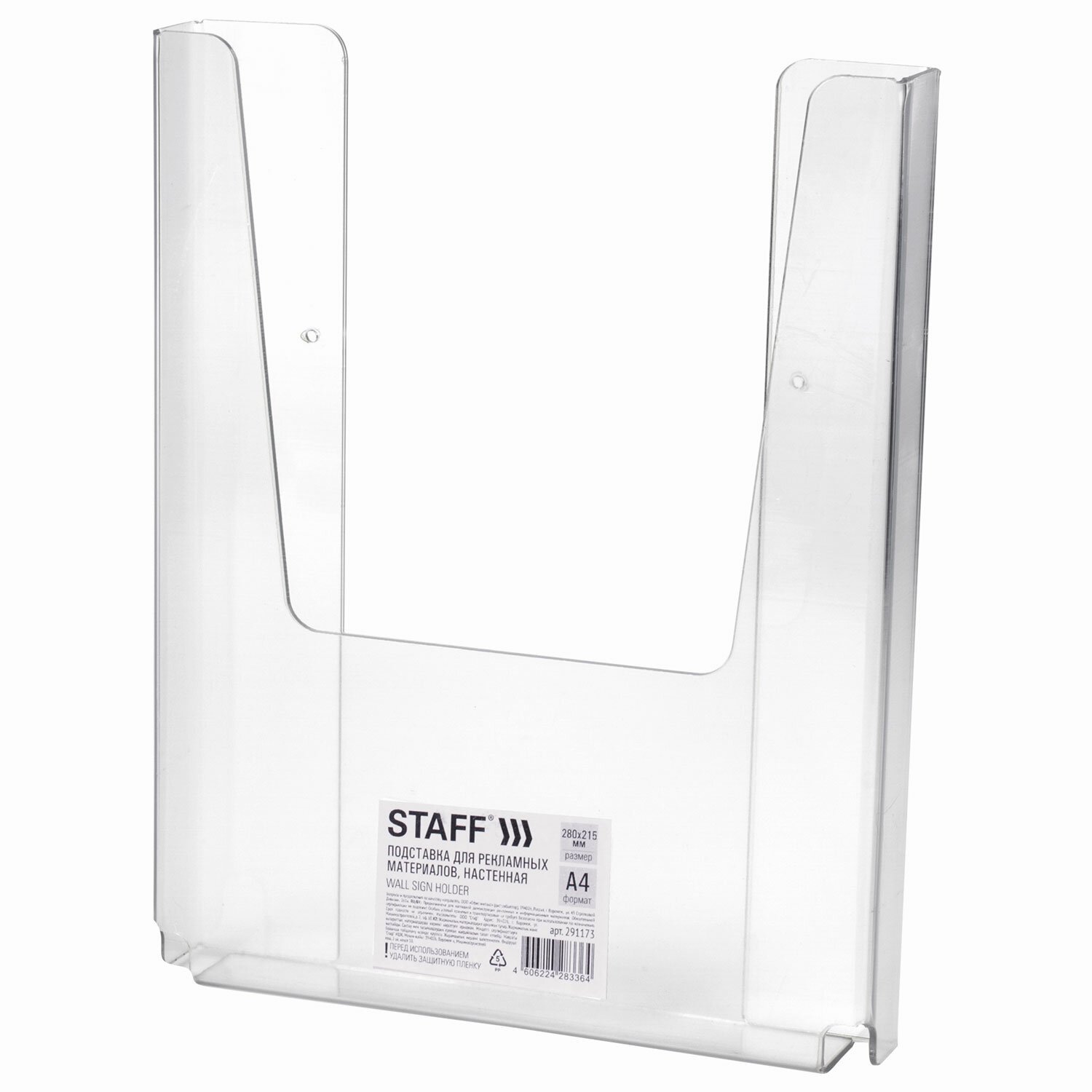 Вертикальная настенная подставка STAFF подходит для размещения рекламной или другой печатной продукции формата А4 и меньше.