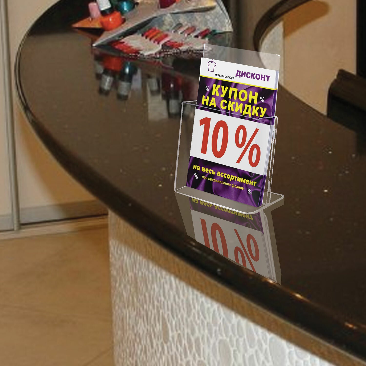 Подставка для рекламных материалов МАЛОГО ФОРМАТА (210х150 мм), А5, односторонняя, горизонтальная, BRAUBERG, 290417