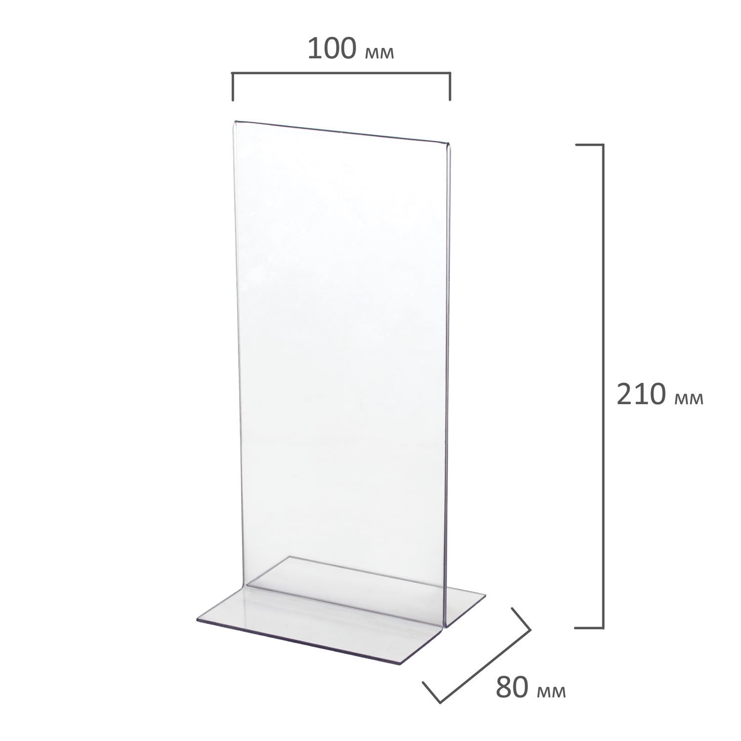 Изготовлена из прозрачного акрилового стекла. Предназначена для настольного размещения. Максимальная высота вставляемого листа - 210 мм, максимальная ширина вставляемого листа - 100 мм.
