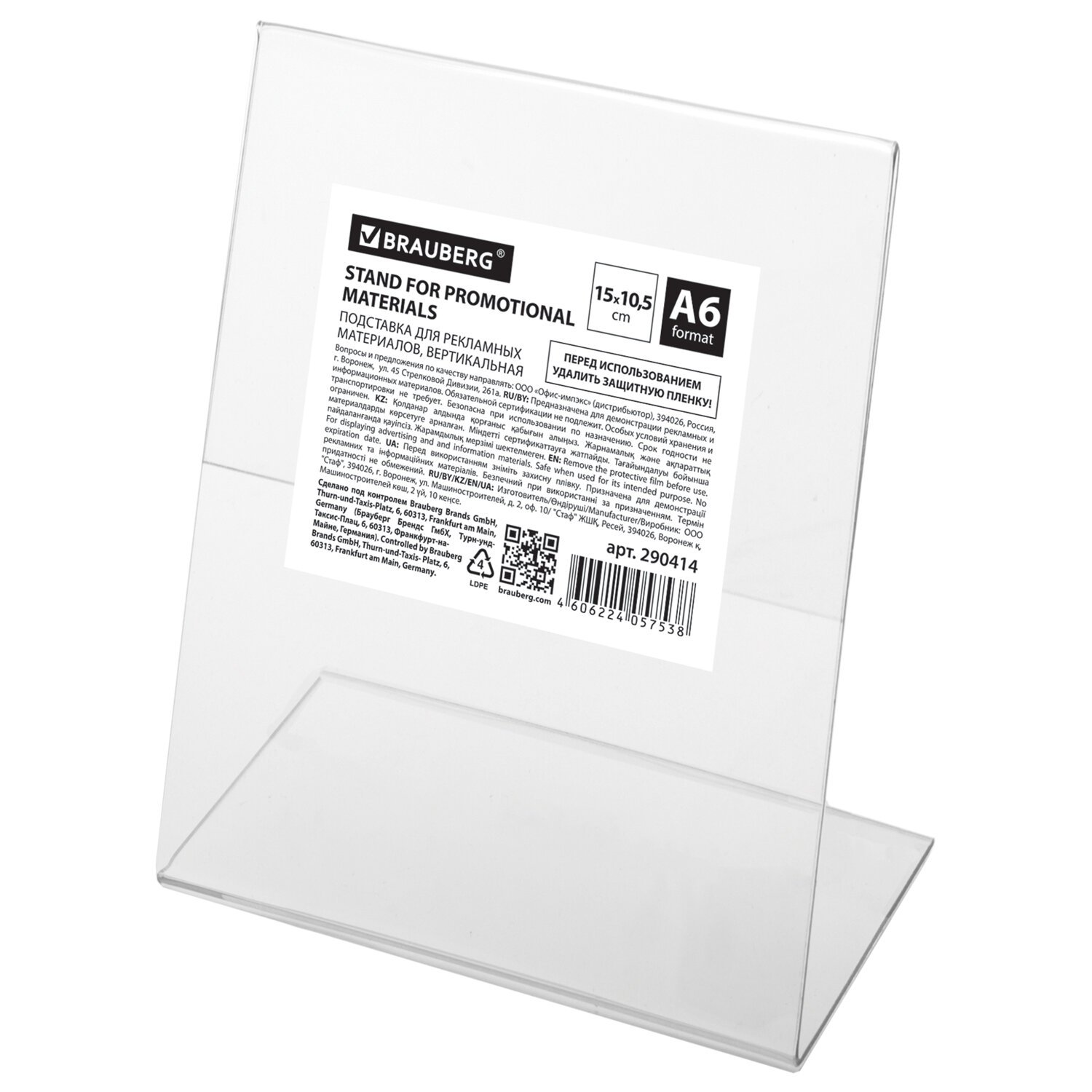 Подставка настольная для рекламных материалов ВЕРТИКАЛЬНАЯ (150х105 мм), А6, односторонняя, BRAUBERG, 290414