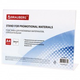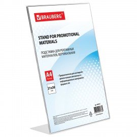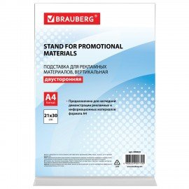Двухсторонняя вертикальная настольная подставка BRAUBERG подходит для размещения меню, рекламных материалов формата А4.