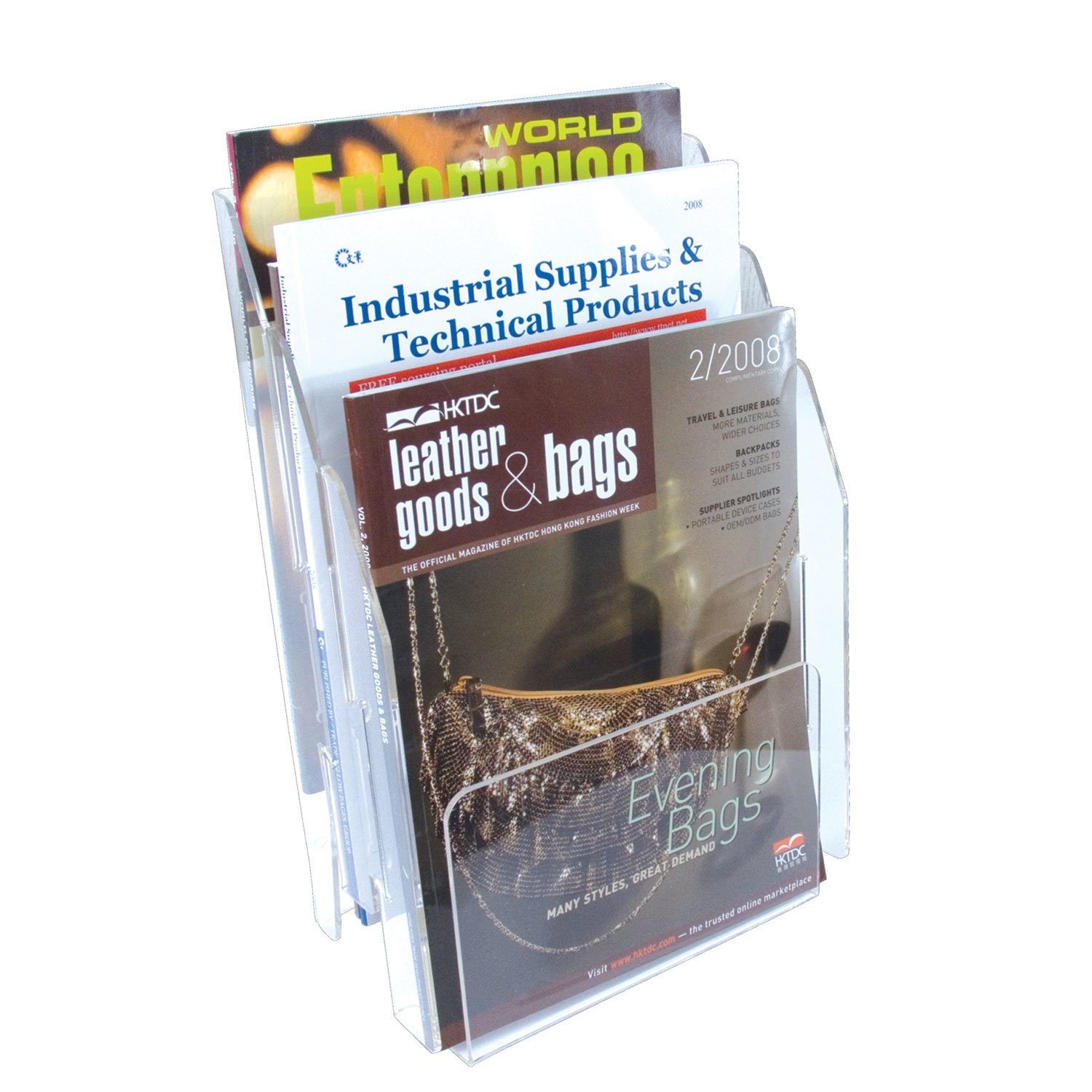 Настольная подставка для рекламных материалов формата А4. Позволяет размещать рекламные материалы каскадом со смещением.