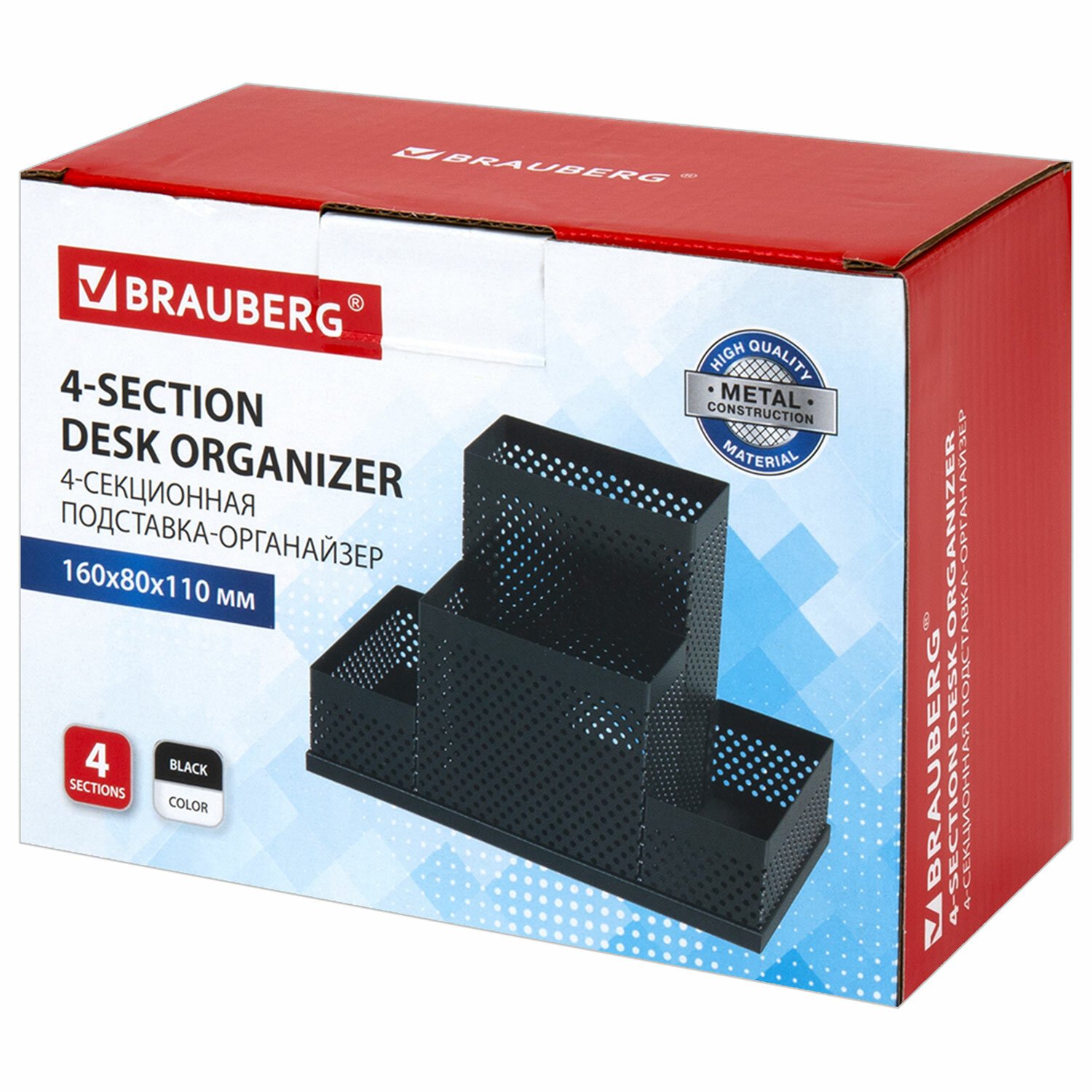 Подставка-органайзер BRAUBERG "Germanium", 4 секции, 160х80х110 мм, черная, металл, 237982