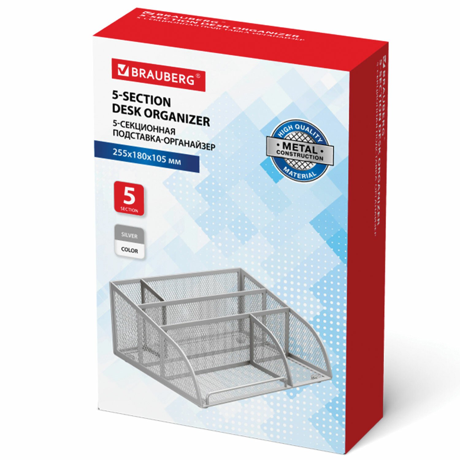 Подставка-органайзер BRAUBERG "Germanium", 5 секций, 255х180х105 мм, металл, серебро, 237974