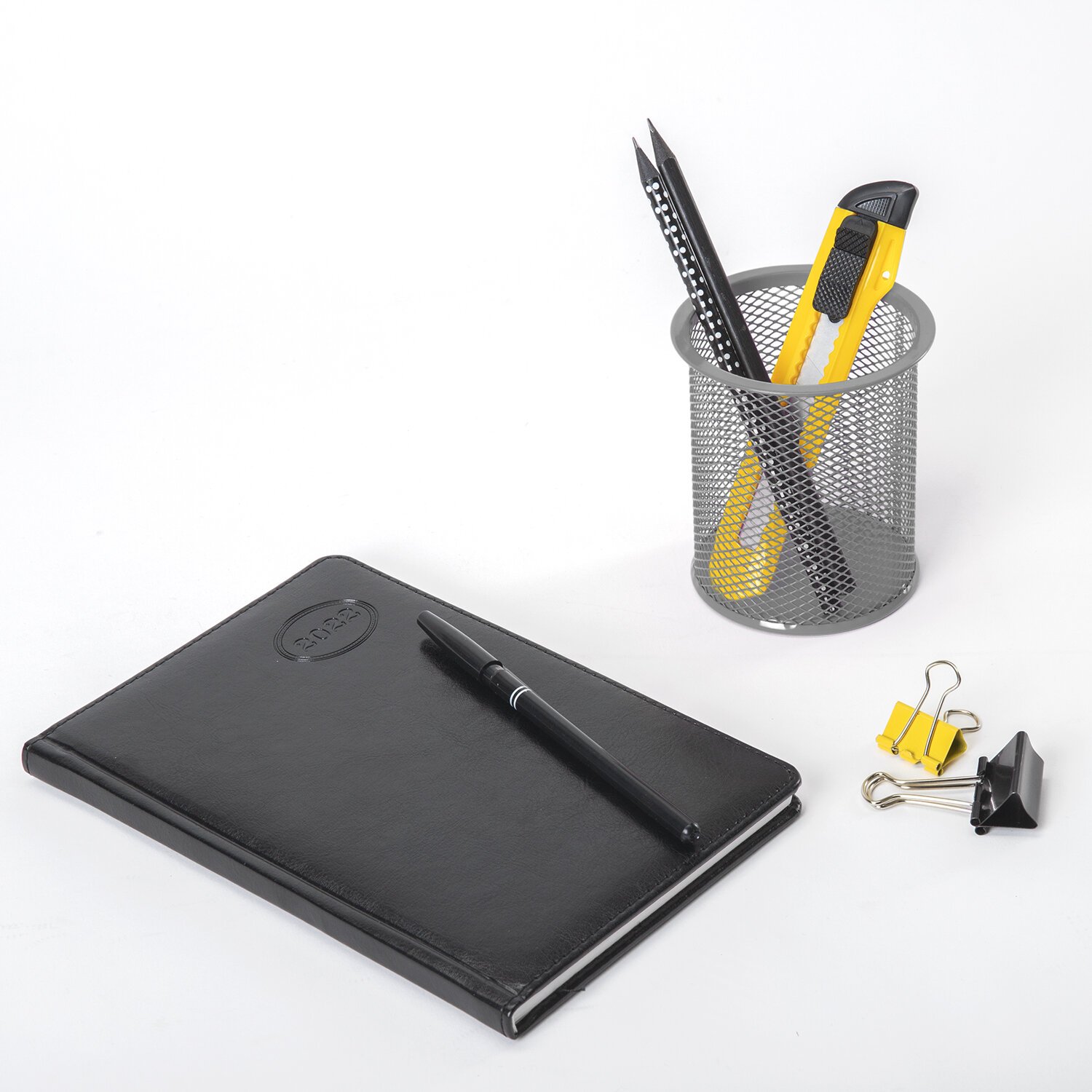 Канцелярский набор BRAUBERG "Офисный 100", 10 предметов, вращающаяся конструкция, черный, блистер, 236949