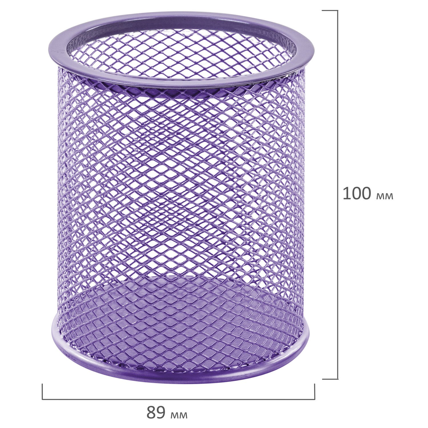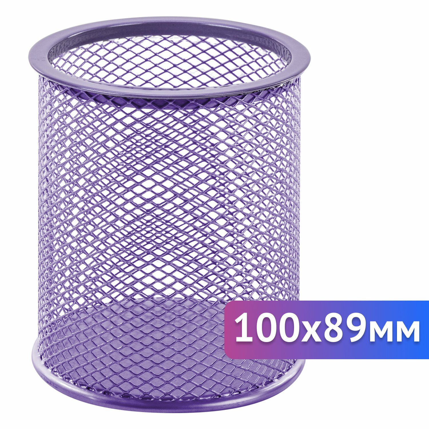 Изготовлена из металлической сетки. Имеет размеры 100х89х89 мм. Состоит из одного отделения. Мягкие подушечки на дне предотвращают скольжение и порчу мебели. Поставляется без канцелярского наполнения.