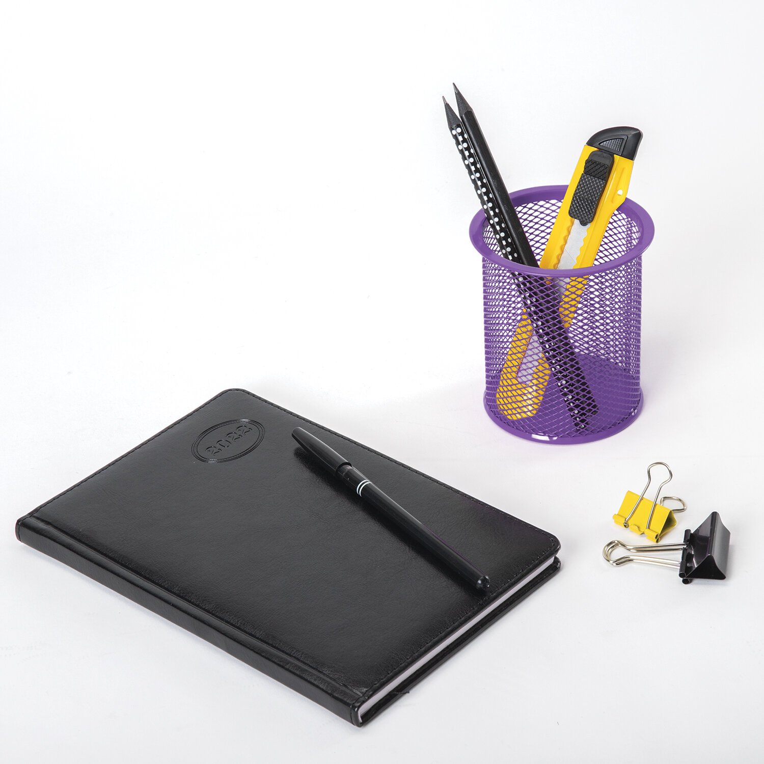 Канцелярский набор BRAUBERG "Офисный 100", 10 предметов, вращающаяся конструкция, черный, блистер, 236949