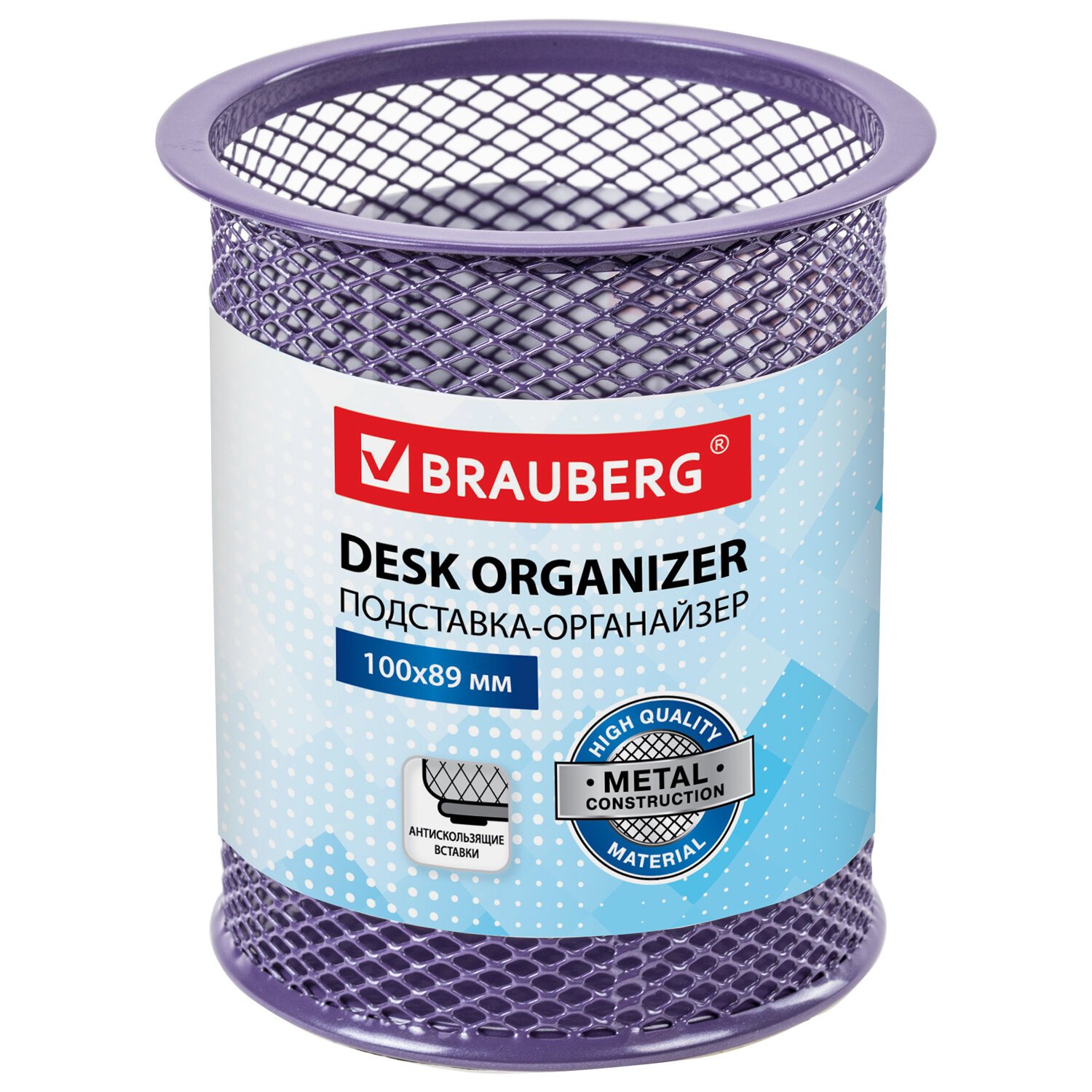 Подставка-органайзер BRAUBERG "Germanium", металлическая, круглое основание, 100х89 мм, фиолетовая, 231981