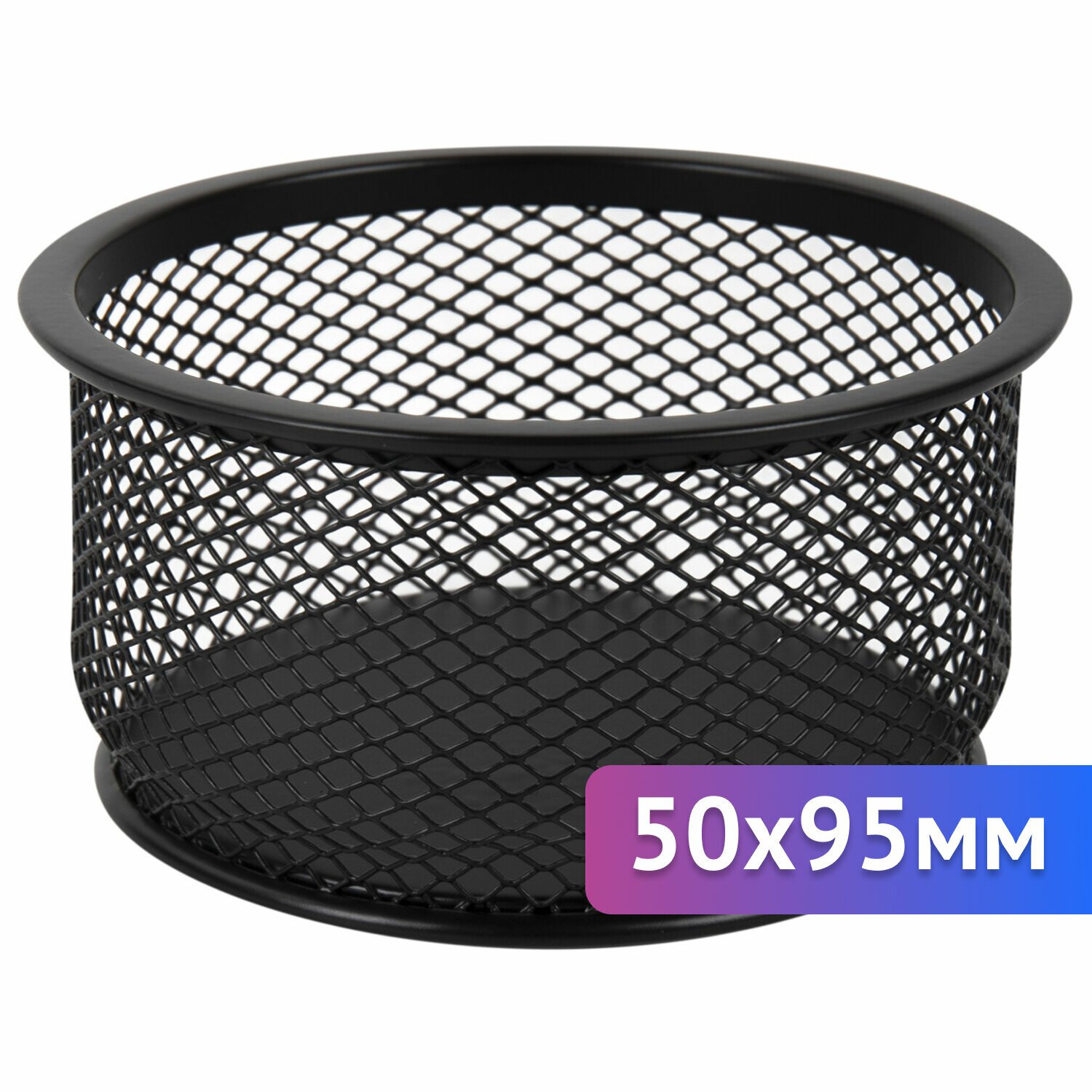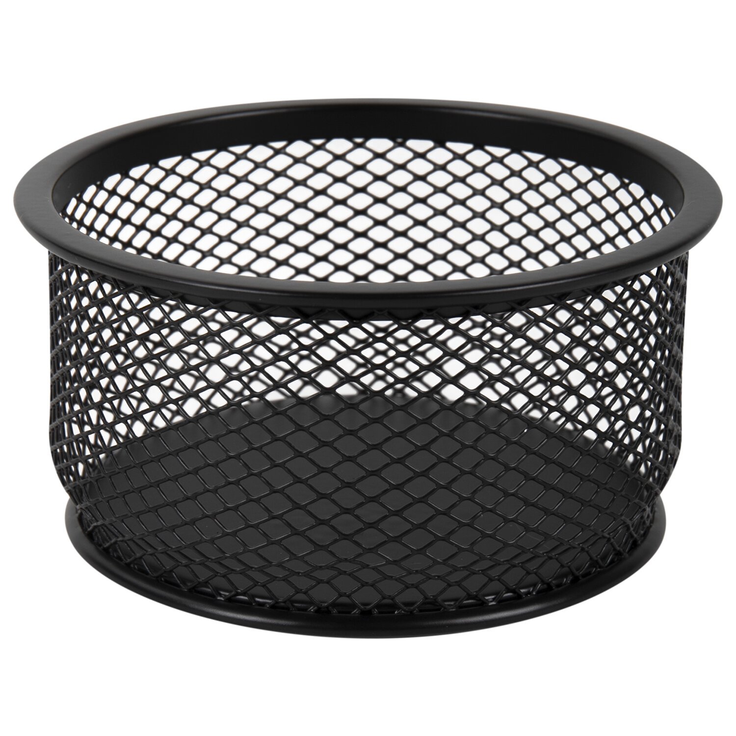 Изготовлена из металлической сетки. Имеет размеры 50х95х95 мм. Состоит из одного отделения. Мягкие подушечки на дне предотвращают скольжение и порчу мебели. Поставляется без канцелярского наполнения.