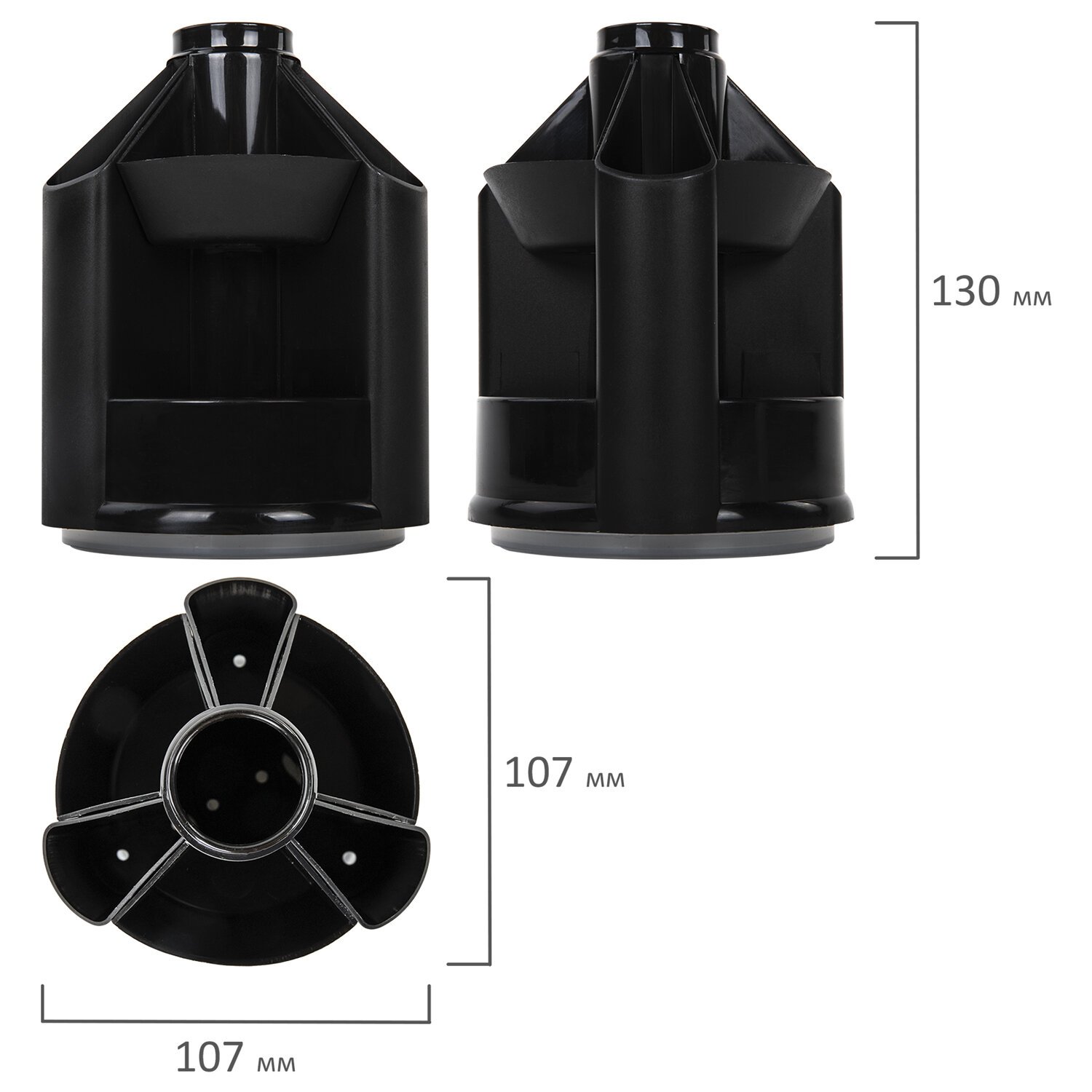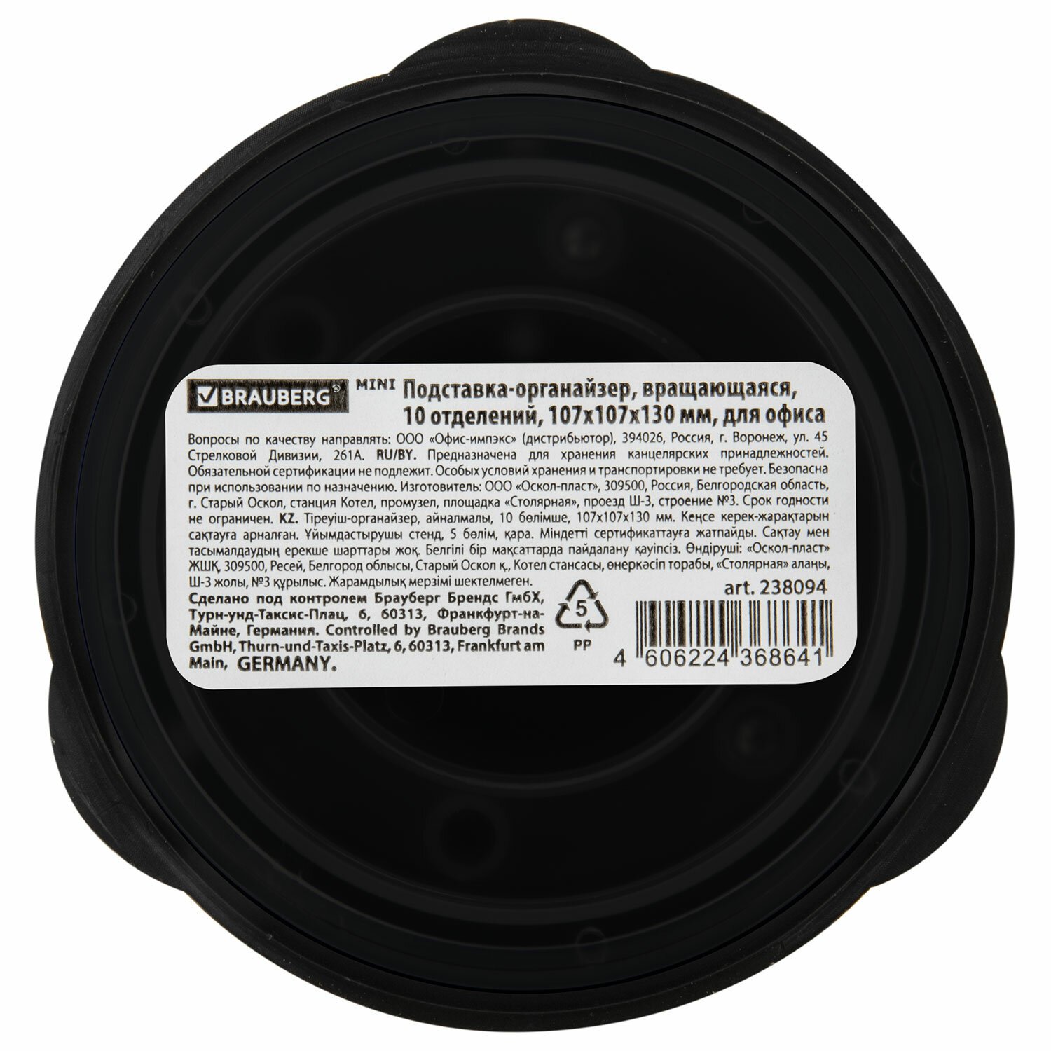 Подставка-органайзер BRAUBERG MINI, 10 отделений, вращающаяся, 107х107х130 мм, черная, 238094