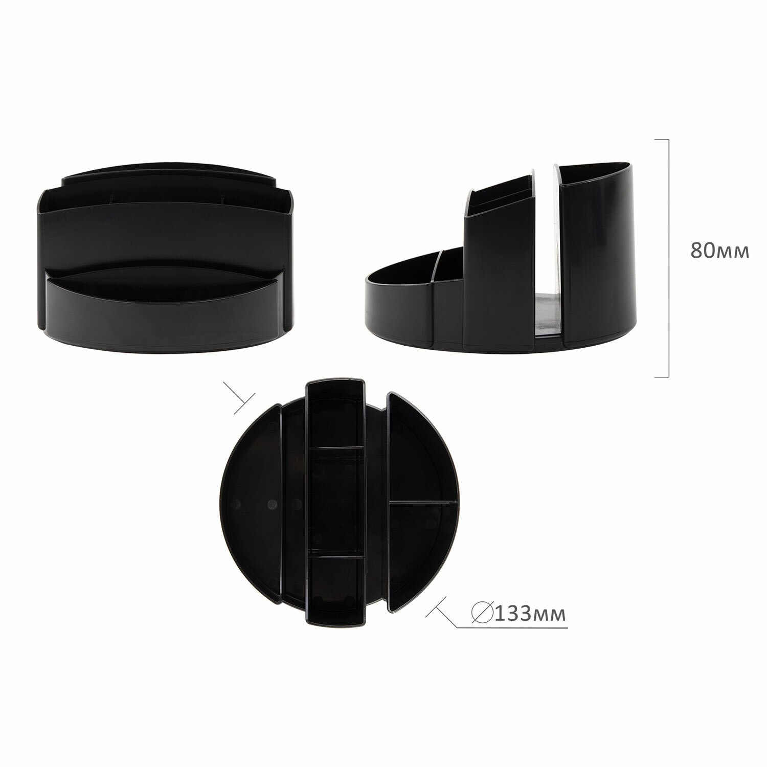 Подставка-органайзер BRAUBERG MINI, 10 отделений, вращающаяся, 107х107х130 мм, черная, 238094