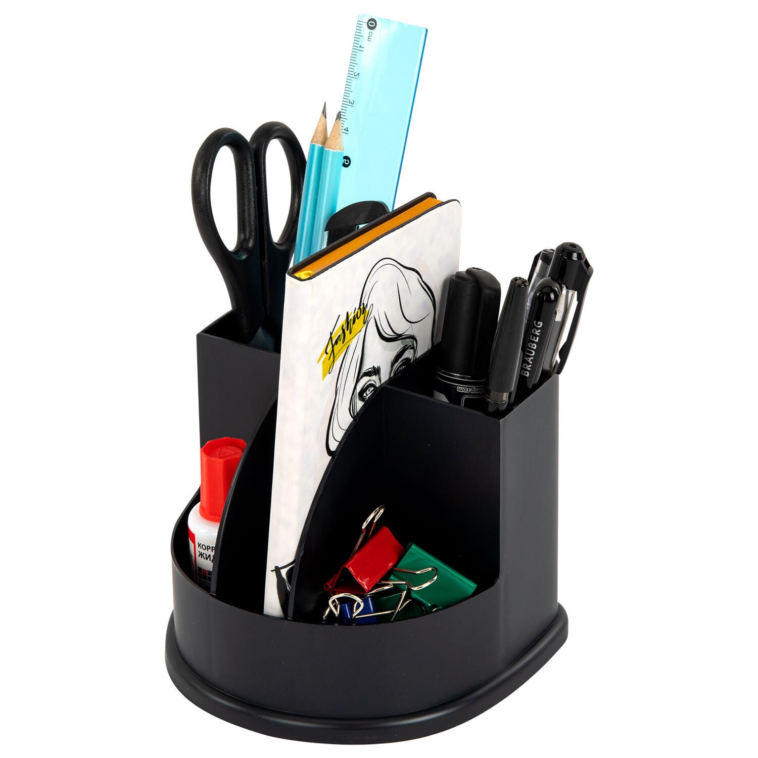 Подставка-органайзер BRAUBERG MINI, 10 отделений, вращающаяся, 107х107х130 мм, черная, 238094