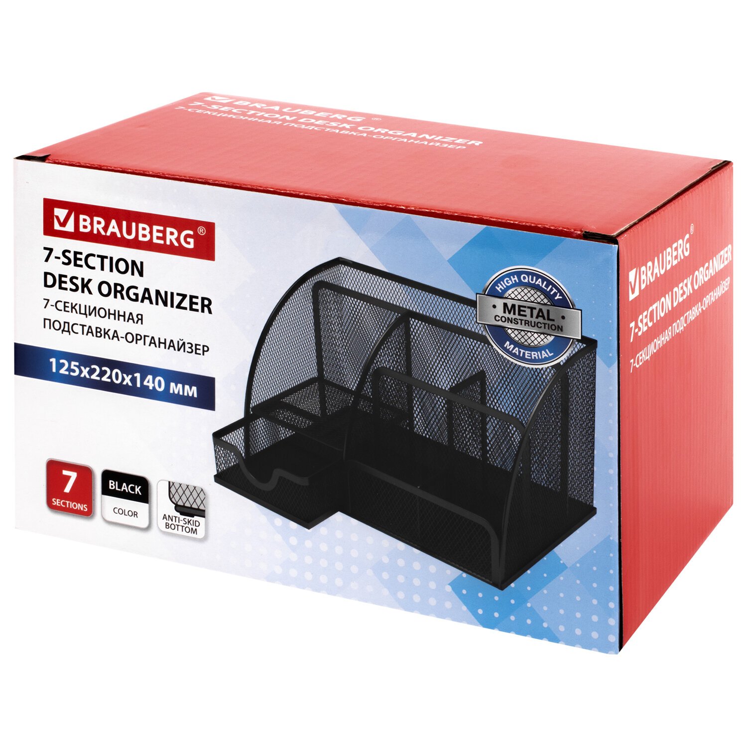Подставка-органайзер металлическая BRAUBERG "Germanium", 7 секций, 125х220х140 мм, черная, 237416