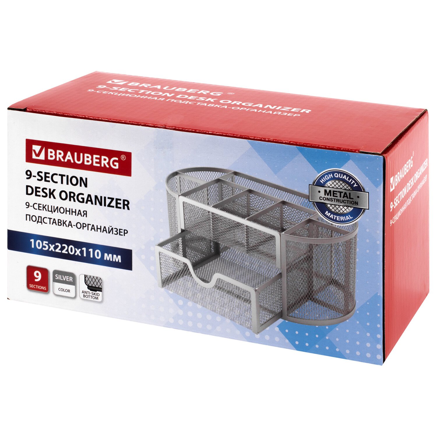 Подставка-органайзер металлическая BRAUBERG "Germanium", 9 секций, 105х220х110 мм, серебро, 237419