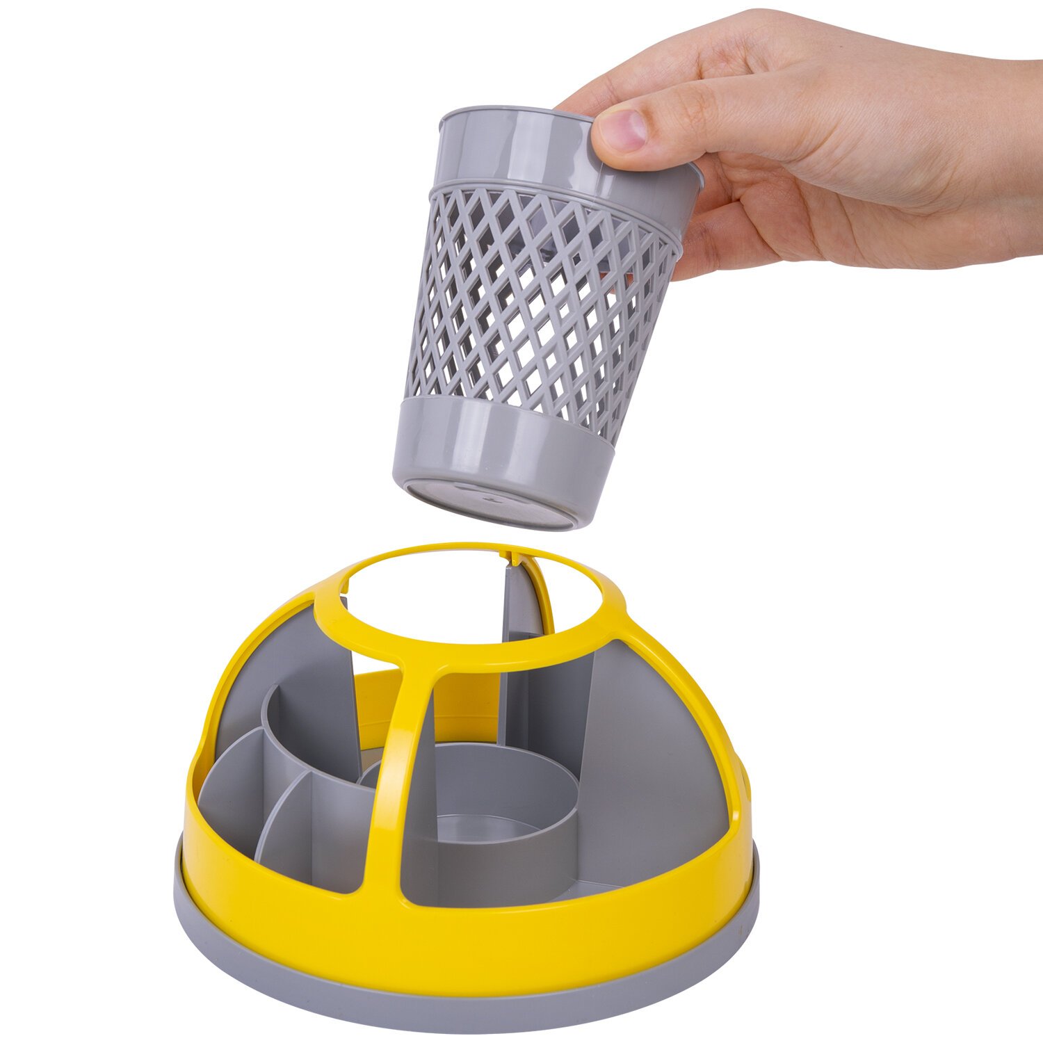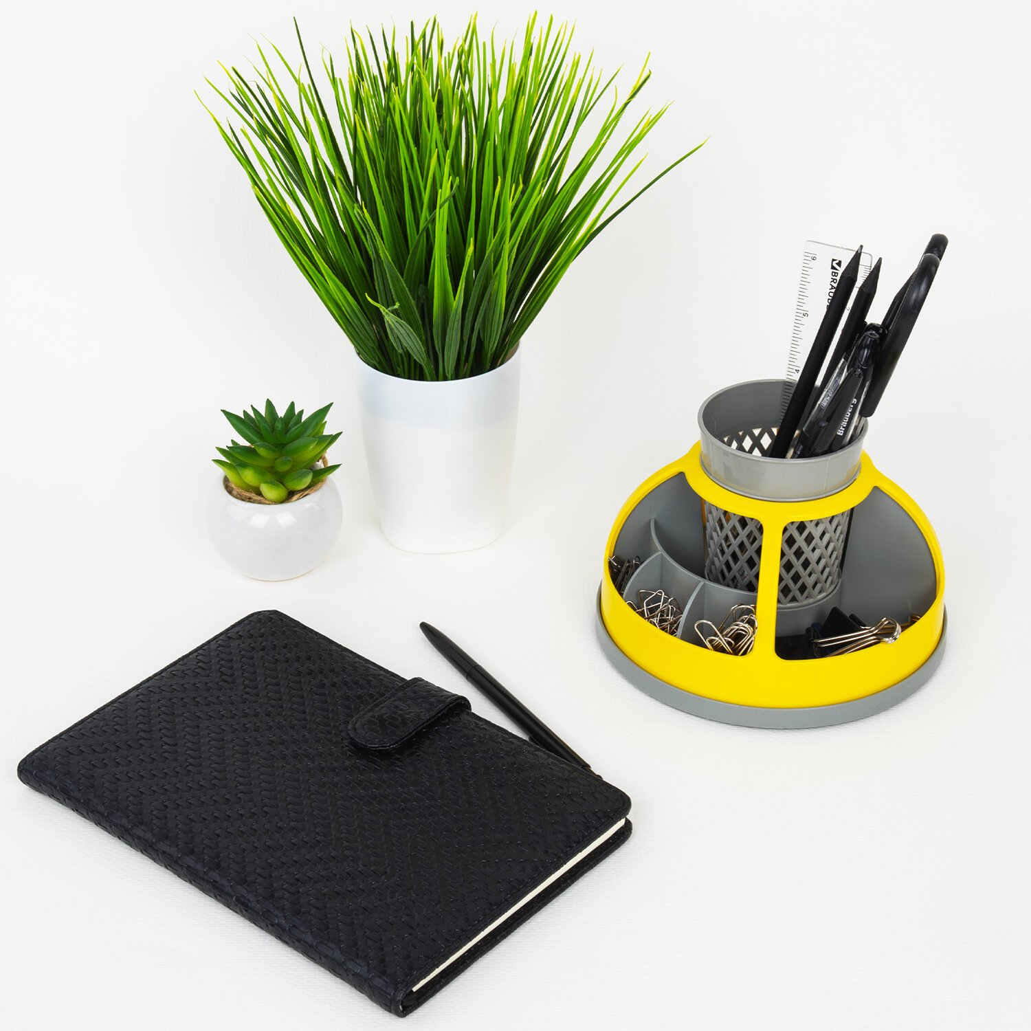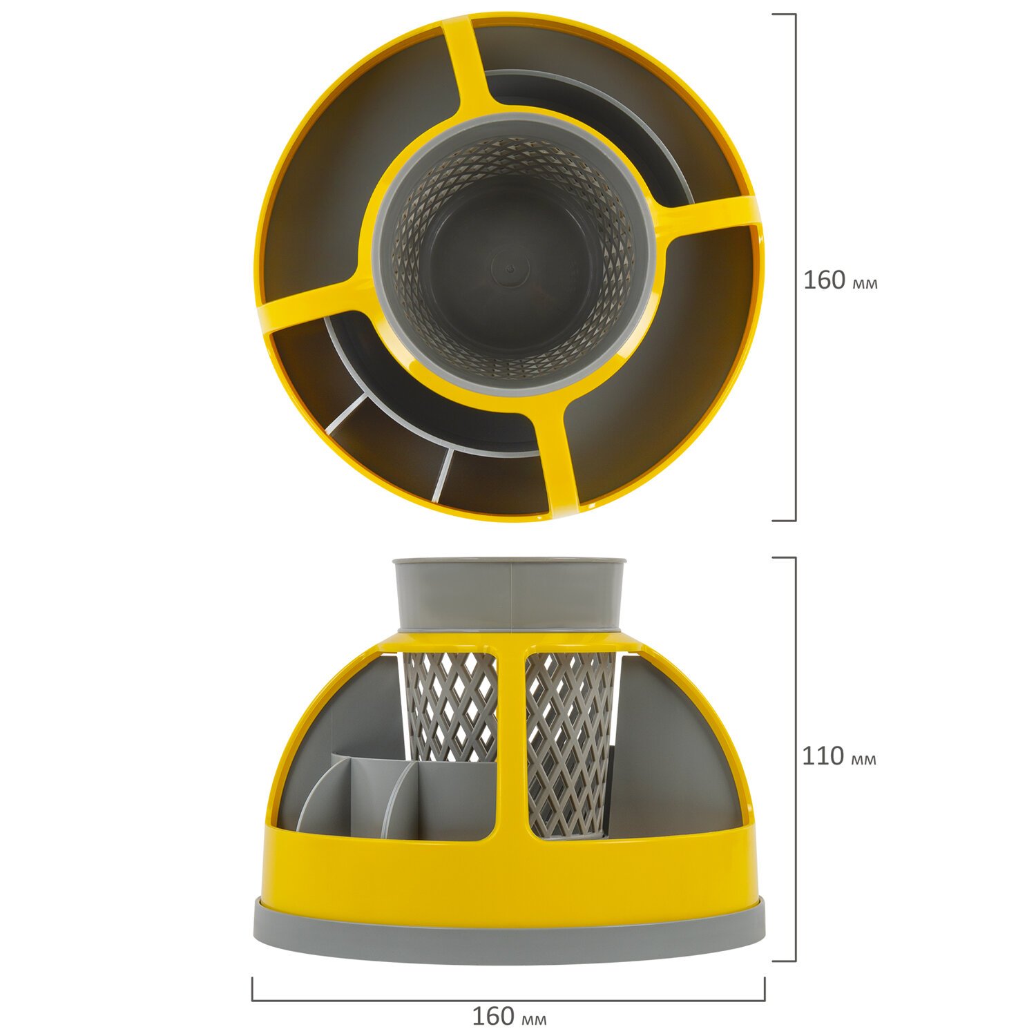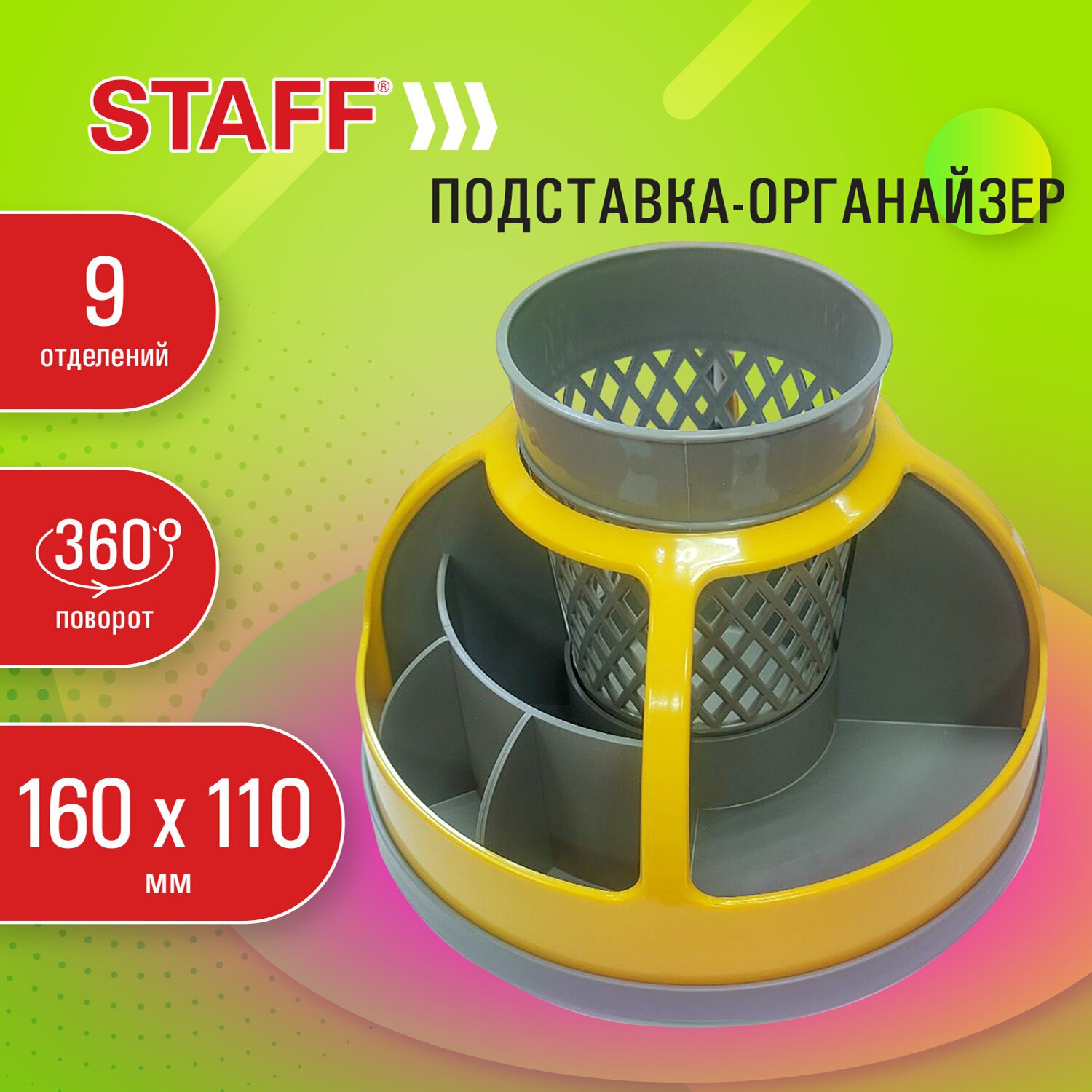 Подставка-органайзер STAFF "Attraction", 9 отделений, вращающаяся, серая/желтая, 238318