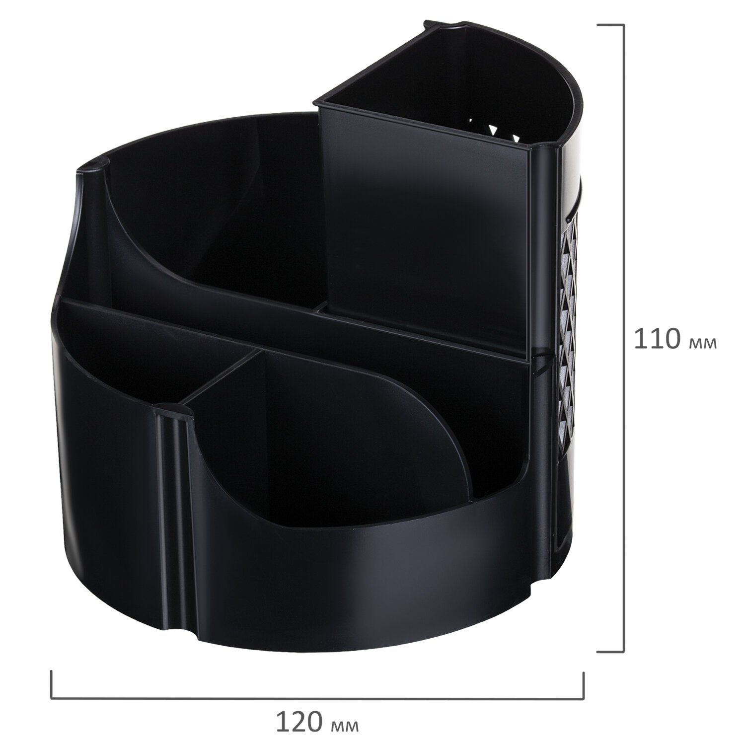 Подставка-органайзер BRAUBERG MINI, 10 отделений, вращающаяся, 107х107х130 мм, черная, 238094