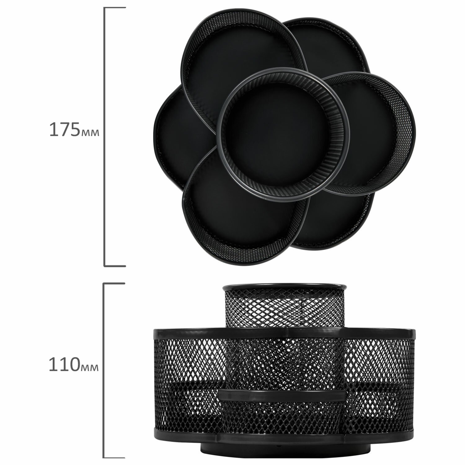 Подставка-органайзер вращающаяся BRAUBERG "Germanium", 7 секций, 110х165х175 мм, черная, металл, 237980