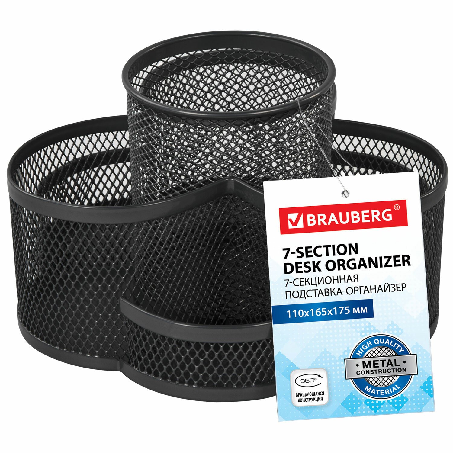 Подставка-органайзер металлическая BRAUBERG "Germanium", 7 секций, 125х220х140 мм, черная, 237416