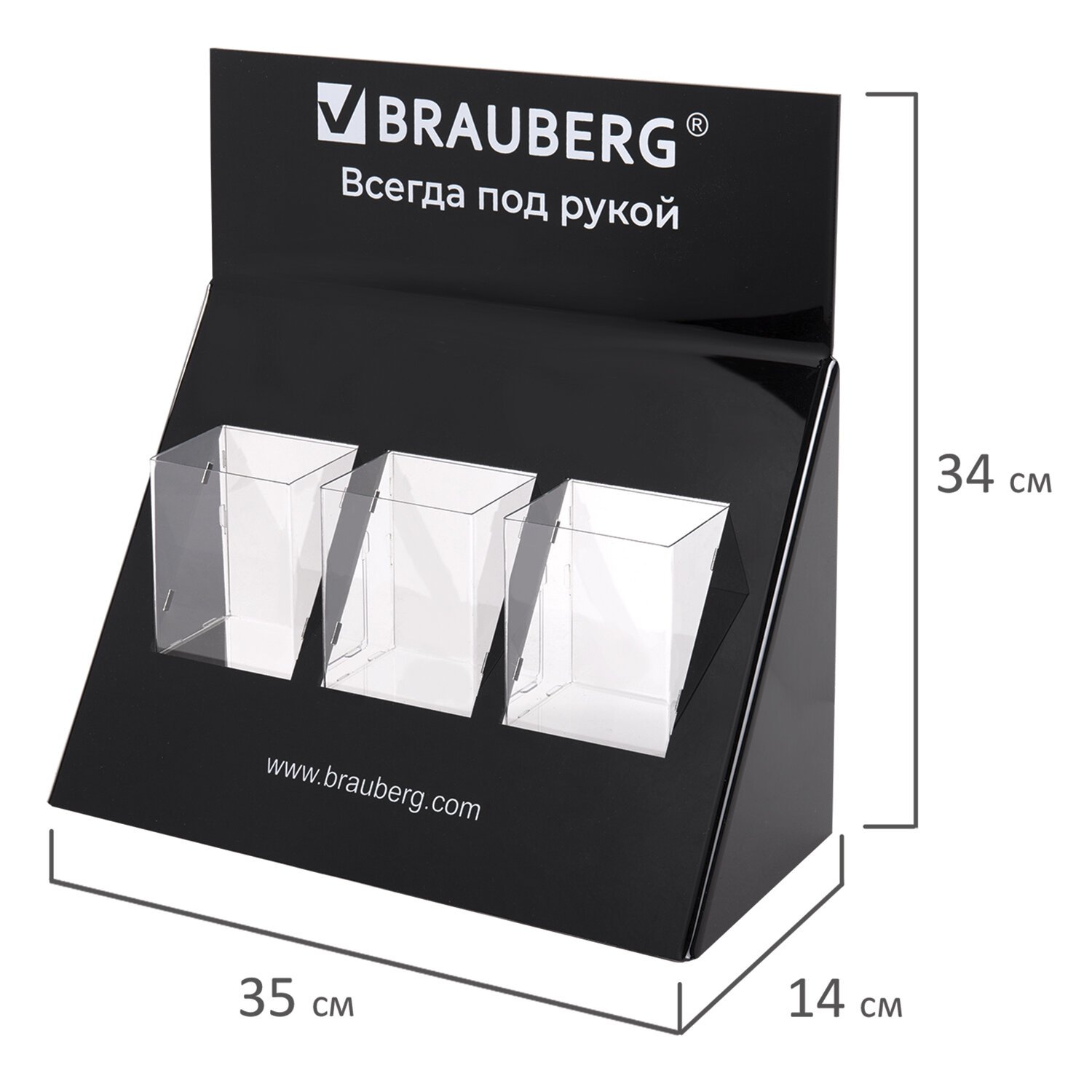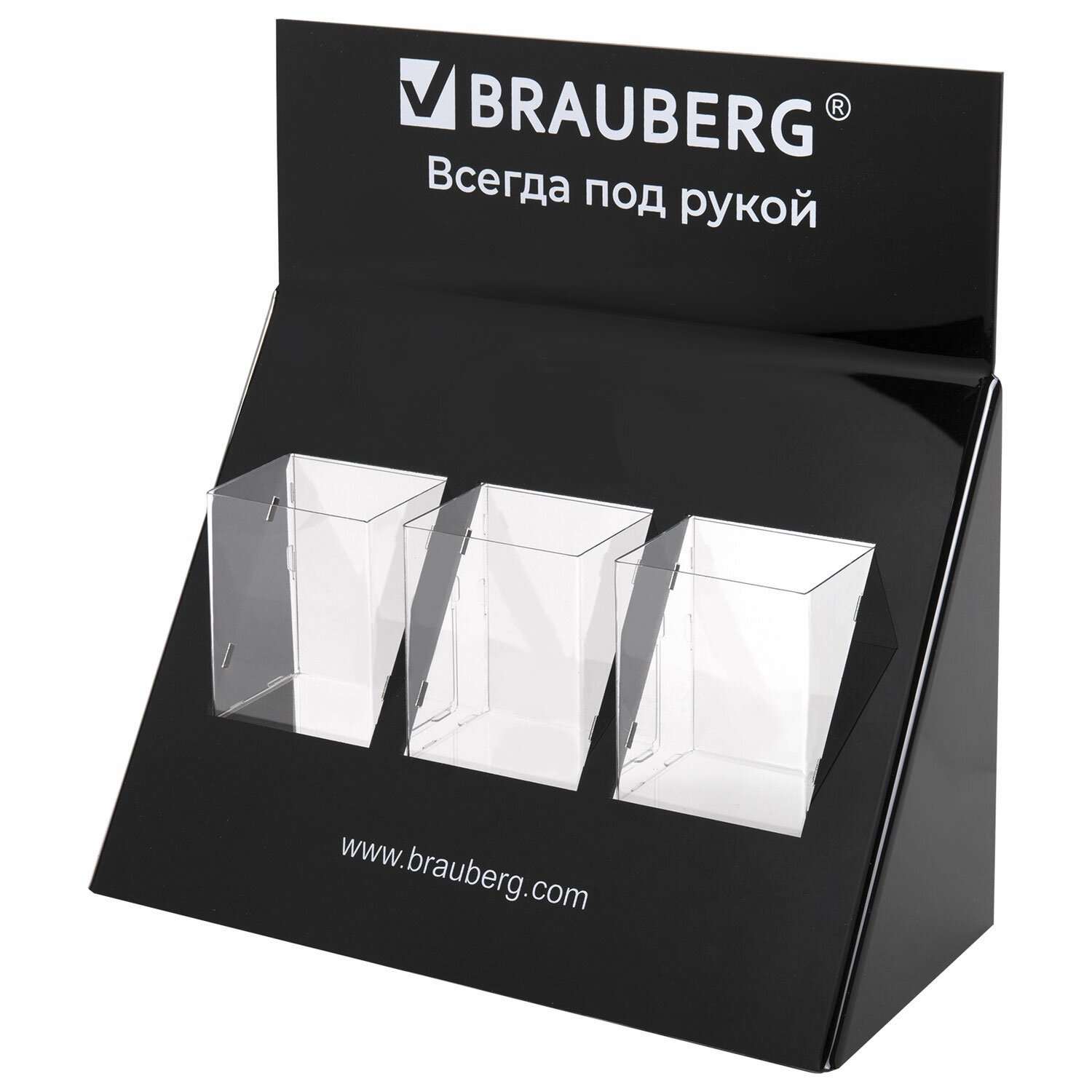 Брендированная подставка BRAUBERG обеспечивает эффективное размещение письменных принадлежностей на витрине.