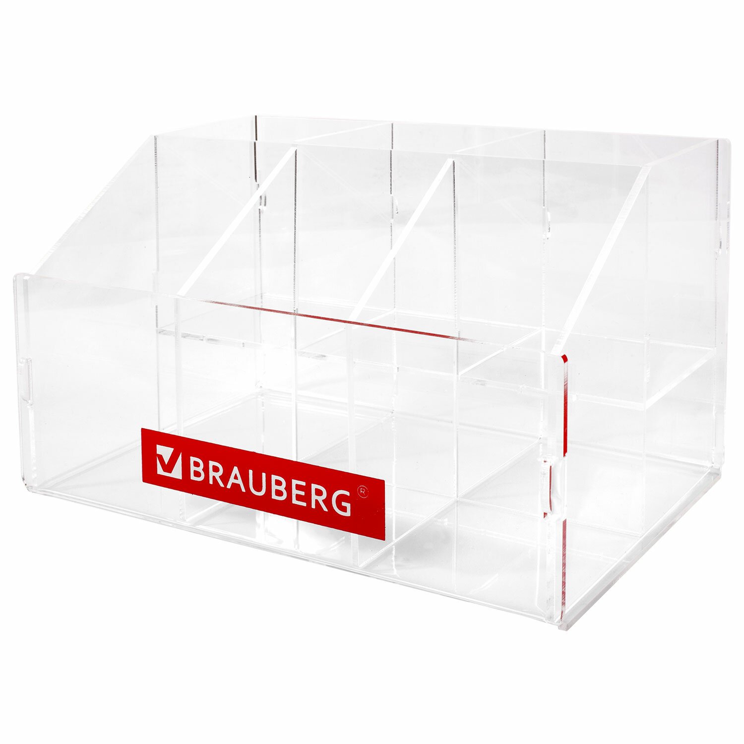 Подставка под письменные принадлежности BRAUBERG, 12 отделений, 15х47х16 см, оргстекло, 505924
