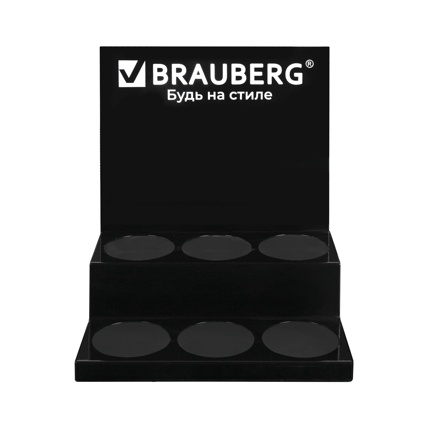 Брендированная подставка BRAUBERG обеспечивает эффективное размещение письменных принадлежностей на витрине.