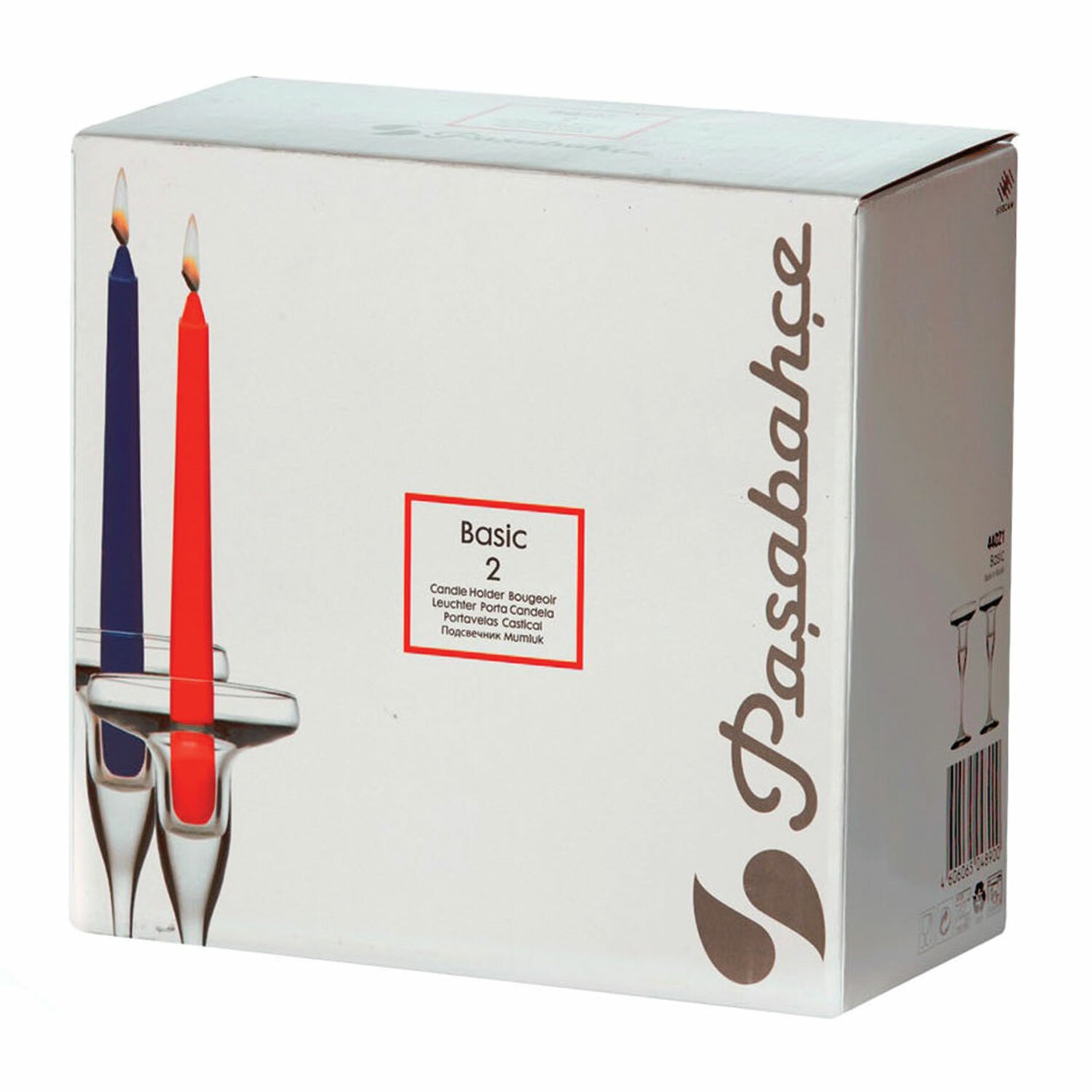 Подсвечник, 170 мм, КОМПЛЕКТ 2 штуки, стекло, PASABAHCE "БЕЙЗИК", фирменная подарочная упаковка, 44021