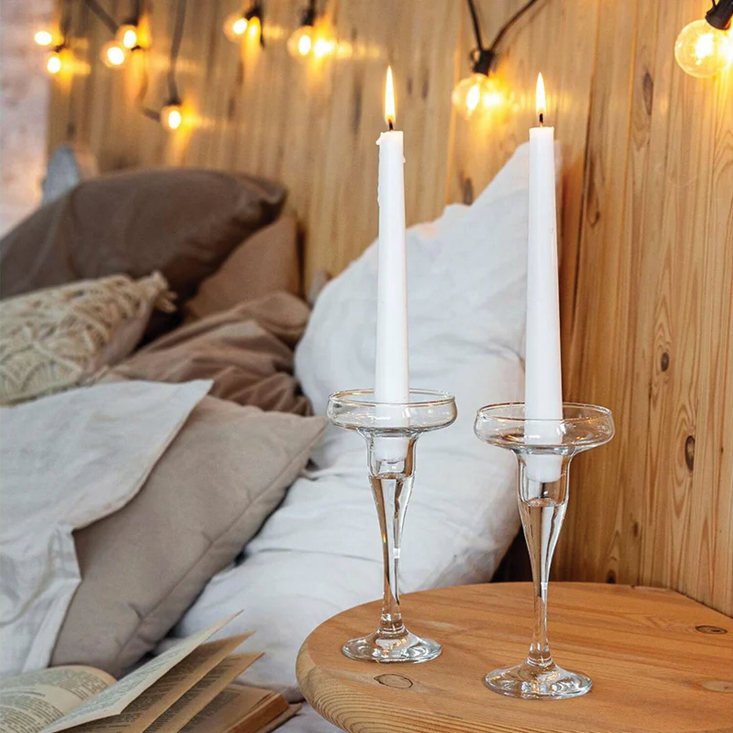 Подходят под диаметр свечи примерно 20-25 мм. Высота подсвечника – 17 см, верхний диаметр – 82 мм, нижний – 65 мм. Поставляется в брендированной упаковке.